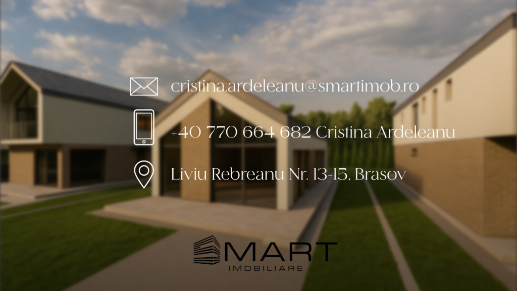 SMART IMOBILIARE vă propune spre vanzare Case ca din povești, la poalele naturii Sânpetru La baza dealului Lempeș, într-un cadru natural spectaculos, se dezvoltă un ansamblu rezidențial compus din 26 de case individuale, gândite pentru familii care își doresc un stil de viață echilibrat, aproape de natură, dar cu toate beneficiile si confortului modern. Fiecare locuință este proiectată cu atenție la detalii spații largi, luminoase, finisaje premium și un design interior contemporan. Atmosfera caldă și deschiderea către natură transformă aceste case într-un adevărat refugiu de familie. Detalii proprietate Suprafață utilă: 120 mp Teren: 500 mp Tip: casă individuală cu cu pod posibilitate mansardare (53mp) Compartimentare: Parter:Compartimentare: • Dormitor matrimonial cu baie și dressing • Dormitor secundar • Baie principală • Living + bucătărie open-space • Debara și cameră tehnică Dotări și beneficii Construcție solidă din cărămidă de 25 cm Se predă la cheie, cu proiect complet de design interior inclus Posibilitate de mobilare și utilare conform conceptului de design Centrală proprie pe gaz Curte și grădină amenajată, terasă și loc de parcare Lumină naturală excelentă orientare ideală pentru răsărit și apus Locație Proiectul este situat într-o zonă liniștită din Sânpetru, la baza dealului Lempeș un loc unde natura, liniștea și comunitatea se completează perfect. Acces rapid către Brașov, școli, centre comerciale și principalele artere de circulație. Pentru mai multe detalii si informatii nu ezitati sa ne contactati si sa precizati ID-ul 18018 Id intern: P18018