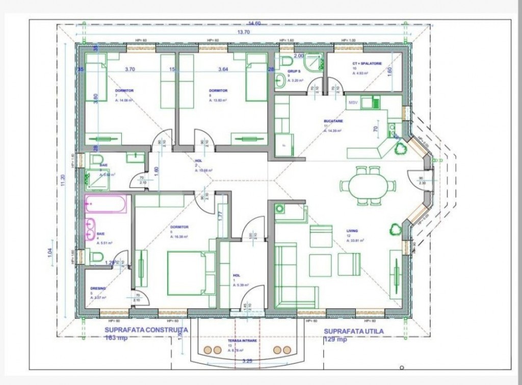 Suntem in cautare de noi proprietari care pun accentul pe calitate, in ceea ce priveste locuinta lor personala! BLITZ va propune spre vanzare un numar de 5 case premium dispuse pe un regim de inaltime parter + pod, construite cu simt de raspundere, in deplina armonie cu natura, avand o arhitectura unica in Brasov. Situata in comuna Sanpetru, intr-o zona aerisita si cu un view curat. Fiecare dintre case ofera camere luminoase si spatioase, ambient foarte placut si primitor, compartimentare inteligenta si eficienta, oferind noilor proprietari finisaje premium si multumirea ca au gasit casa mult visata. Pozitionarea lor se afla in S-V respectiv S-E si N-V. Casa este premium, construita in stil traditional, dar ofera in acelasi timp eleganta si confort : -1 bucatarie open space cu zona de dinning si living generos cu suprafata de 50mp - 1 spalatorie / camara - 3 dormitoare (un dormitor matrimonial de 17 mp + dressing si baie proprie si 2 dormitoare cu SU 14mp ) - 2 bai principale : - baie cu dus si cada la dormitorul matrimonial - baie comuna pentru cele 2 dormitoare de 18mp - 1 grup sanitar Detalii tehnice : structura de caramida T30x25 cm latime, placa de beton intre parter si pod, fundatie beton armat+fier, izolatie exterioara cu polistiren 20cm cu densitate de 80% , incalzire in pardoseala pe toata suprafata casei. Detine toate utilitatile necesare: apa, canalizare, gaz si electricitate. Proprietatea ofera acces cu masina in curte. Vila este potrivita pentru familii de toate varstele. Constructia este pe un singur nivel, fara scari sau trepte, accesul facandu-se foarte facil din exterior si peste tot in interior. Stadiu : Lucrarile incep in luna ianuarie 2024 si se finalizeaza in functie de prioritatile clientilor! Termen limita : toamna anului 2024 . Metoda de plata : 3 transe in diferite stadii ale constructiei. 30-30-40% Predare : Se predau la alegere : semifinisate cu posibilitatea sa va amenajati dupa bunul plac / la cheie cu un buget prestabilit pe mp. Comision 0% cumparator! Pretul actual este pentru rezervare din stadiul de proiect! Va invit la o discutie deschisa pentru a prezenta proiectul de la A la Z ! Cod ofertă / ID BLITZ: P99478 Id intern: P99478