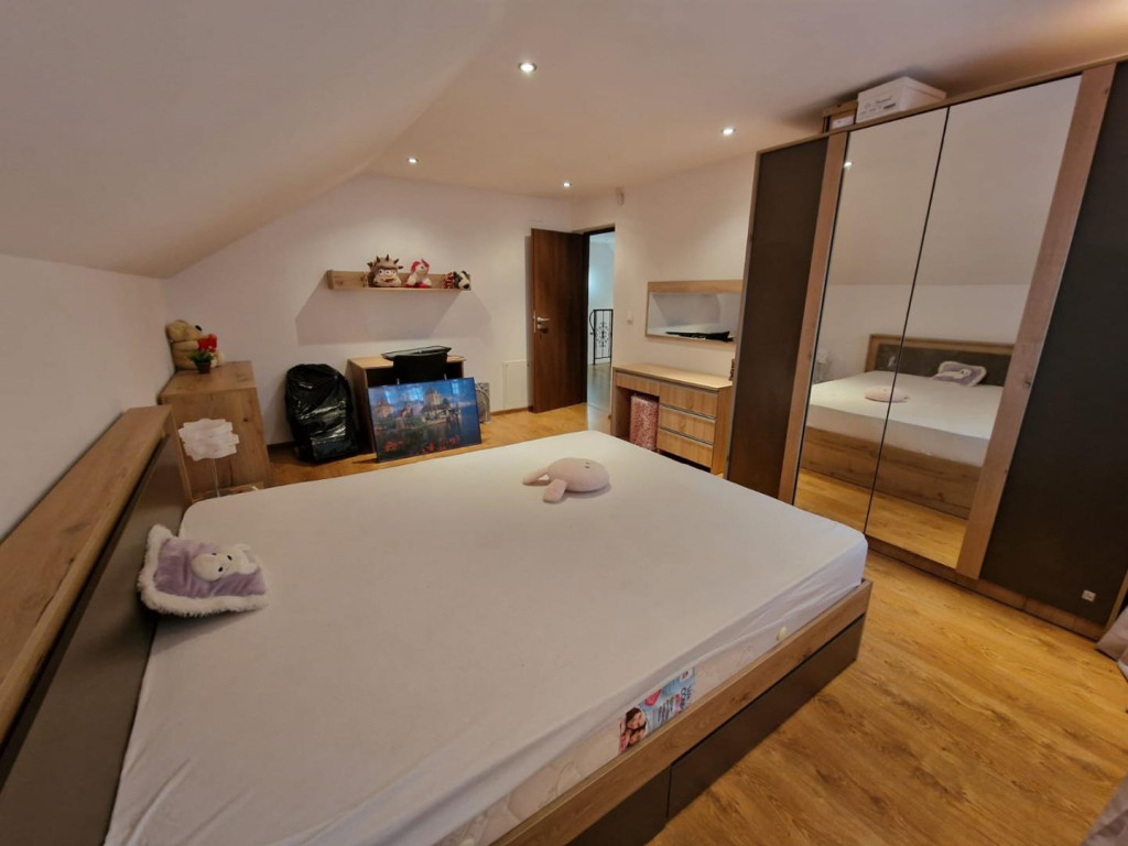 Casă complet utilată, pe colț, teren 780 mp – Frumușani, sat Orăști, la 100 m de DN4 La doar 15 minute de agitația Bucureștiului, în satul Orăști din comuna Frumușani, se află o proprietate cu adevărat specială — o casă luminoasă, primitoare și complet utilată, amplasată pe un teren generos de 780 mp, pe colț, cu dublă deschidere și acces rapid la DN4. Construită solid și gândită pentru confortul zilnic, locuința îmbină liniștea vieții de la curte cu funcționalitatea unei case moderne. Este o casă în care te poți muta imediat, fără alte investiții, cu toate detaliile deja pregătite pentru o viață frumoasă. Date generale Regim de înălțime: Parter Mansardă Suprafață utilă totală: 197,67 mp Parter: 106,5 mp utili Mansardă: 90,97 mp utili Terasă acoperită: 15,7 mp Garaj: 22,9 mp Loc parcare: 1 loc în curte Compartimentare Parter: living spațios și luminos, bucătărie complet echipată, dormitor, dressing, baie, cameră tehnică, garaj, grup sanitar și terasă acoperită pentru seri liniștite de vară. Mansardă: trei dormitoare generoase, birou sau cameră de copil, baie, hol și balcon cu priveliște deschisă spre curtea verde. Utilități Energie electric, Apă din puț forat, cu hidrofor, Fosa septică, Încălzire cu centrală pe peleți Ferolli, boiler apa, alarma și generator electric, Gaz și canalizare disponibile la DN4, la aproximativ 100 de metri Dotări și echipamente incluse Locuința se vinde complet mobilată și utilată, exact ca în fotografii. Bucătăria este complet echipată – frigider, plită pe gaz, cuptor electric, hotă, mașină de spălat vase și toată vesela necesară. Casa este dotată cu mașină de spălat rufe, imprimantă, calculator cu unitate, sistem audio BOSE 10 1 cu subwoofer, PlayStation portabil cu jocuri, mobilier complet și decor cald. Include accesorii utile: pătuț de copil, trei scaune auto, un cărucior 3 în 1 nou, trei cărucioare pliabile, lenjerii și haine noi, patru pilote de pat noi. Curtea dispune de iluminat automat pe gard și pe fațadă, foișor generos cu grătar din cărămidă, beci pentru depozitare și un sistem video cu 9 camere. Instalația exterioară beneficiază de un al doilea puț, dedicat pentru grădină și irigații. Detalii constructive Acoperiș din țiglă Bramac ,Izolație cu vată minerală ,Pereți tencuiți, gletuiți și zugrăviți cu vopsea lavabilă, Finisaje moderne: gresie în holuri, bucătărie și băi, parchet în dormitoare Avantaje Casă complet mobilată și utilată, gata de locuit Teren de 750 mp, colț, cu dublă deschidere Acces facil la DN4, la doar 100 m, Statie microbuz peste drum, Magazine non stop, Benzinarie Statie Itp / service auto, Fabrica de mezeluri ,Mega Image,Pepco, Magazin de articole de pescuit, Magazin de materiale de constrctii ,Spalatorie auto, Fortuna, Balta Frumusani , Acces usor la A0, Zona in dezvoltare. Proprietatea este monitorizata 24/24 de firma de paza sub contract Guard One. Curte verde și amenajată, cu foișor, grătar și beci 9 camere video și sistem de iluminat inteligent, Extra puț pentru sistemul de irigații. O proprietate care îmbină perfect liniștea, funcționalitatea și rafinamentul. O casă pregătită pentru familie, confort și momente de tihnă, la câțiva pași de București. BONUS EXCLUSIV OFERIT LA VÂNZARE: Pentru cumpărătorul care alege această proprietate, se oferă cadou o mașină din 2009 (Opel Astra Station Wagon, perfect funcțională) – ideală pentru deplasările zilnice sau activitățile din gospodărie.