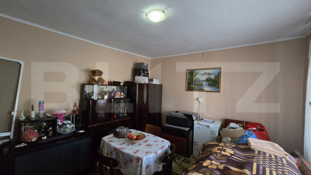 BLITZ oferă spre vânzare o casă frumoasă și primitoare situată în localitatea Amati, la doar 10 minute de municipiul Satu Mare. Proprietatea are o suprafață de 95 mp și este mobilată și utilată, fiind pregătită pentru a deveni noul cămin al unei familii care își dorește liniște și confort. Casa este compusă din 2 camere spațioase, o bucătărie generoasă, un hol mare și o baie foarte spațioasă. Interiorul a fost zugrăvit recent, oferind un aer curat și proaspăt. Terenul aferent are o suprafață impresionantă de 4446 mp, fiind ideal pentru relaxare, grădinărit sau extinderea proprietății. În curte se află o livadă frumoasă, iar terenul beneficiază de două fronturi la stradă: 19 m la drum asfaltat 20 m la drum pietruit Această proprietate reprezintă o oportunitate excelentă pentru cei care caută un loc liniștit, înconjurat de natură, dar aproape de oraș. Pentru mai multe detalii și programarea unei vizionări, contactează consultantul Blitz! Cod ofertă / ID BLITZ: P157120 Id intern: P157120