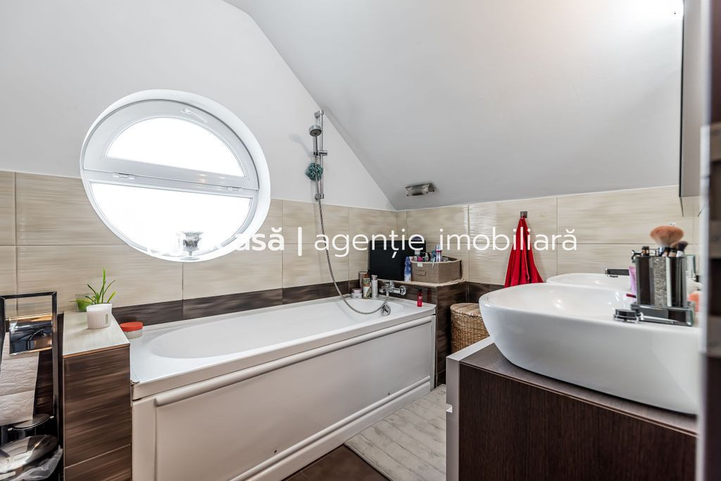 Vă propun spre vânzare o casă individuală situată în cartierul rezidențial Westfield, potrivită pentru o familie care își dorește confort, compartimentare practică și curte amenajată. Proprietatea are 140 mp utili, este construită pe un teren de 387 mp, cu amprentă la sol de 72 mp, iar casa este finalizată în 2014. Dispune de acoperiș din țiglă și izolație exterioară cu polistiren. Se vinde mobilată și utilată, fiind pregătită pentru locuire. Compartimentare: Parter: bucătărie open-space | living | dining | baie cu cabină de duș | coridor | terasă exterioară acoperită Mansardă: 2 dormitoare decomandate | dormitor matrimonial cu dressing | baie cu vană Dotări: instalație electrică | instalații sanitare complete | instalație de încălzire pentru calorifere | aer condiționat în fiecare cameră Exterior: curte amenajată | sistem de irigații comandat, alimentat de hidrofor | anexă separată în curte | baie pentru musafiri | cameră de depozitare cu intrare separată | 3 locuri de parcare în fața casei Preț listare: 189.900 Euro Pentru detalii și vizionare: Mihai Molnar – consultant imobiliar | 0761 899 230 (Telefon/WhatsApp)