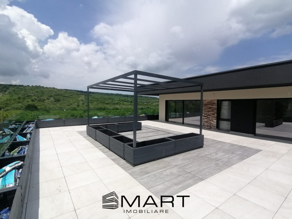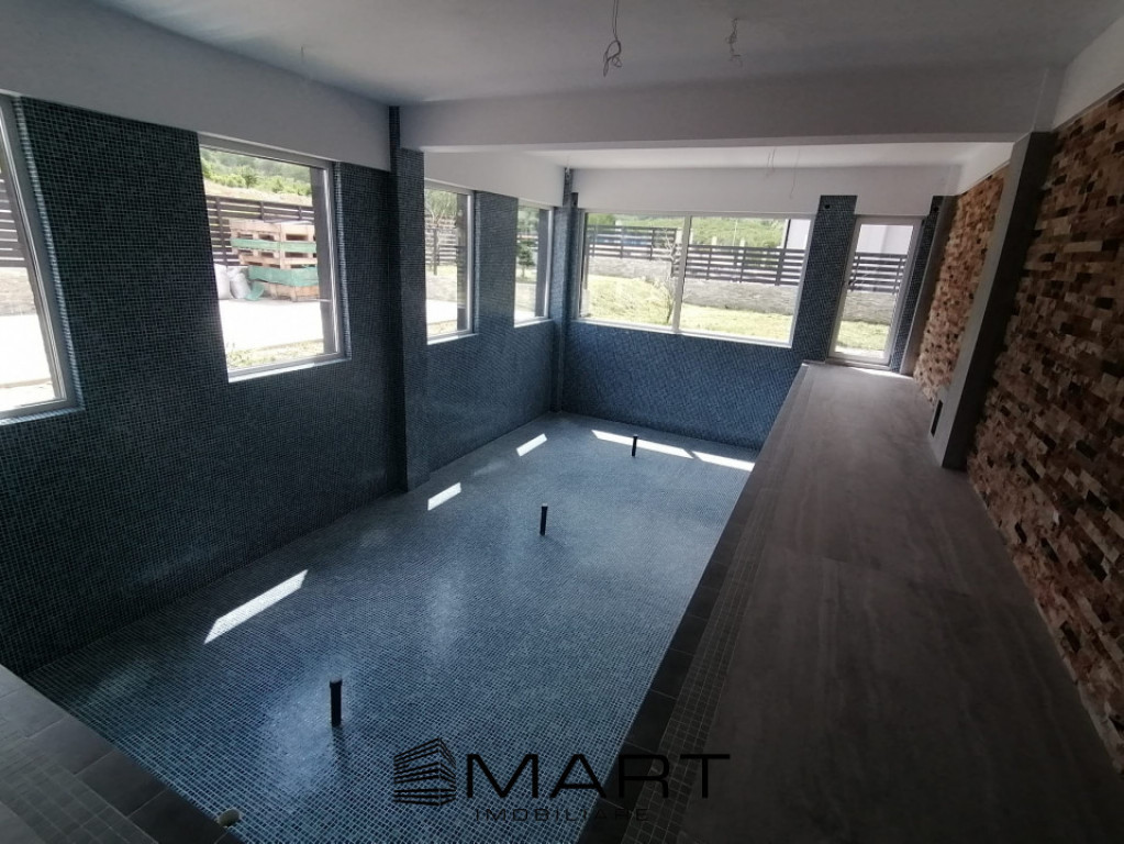 Smart imobiliare vinde cu comision 0, casa situata in Cisnadie, la iesirea spre Cisnadioara. Casa dispune de o suprafata utila de 183 mp plus garaj de 20mp si o piscina acoperita de 52mp, totalizand 255mp. Imobilul este dispus pe parter plus etaj si dispune de o terasa spatioasa de 130 mp ce ofera o priveliste linistitoare spre Cisnadioara. Parterul dispune de un living spatios cu zona de dinning si bucatarie cu suprafata de 63mp, hol, baie, garaj si piscina acoperita. Etajul dispune de 4 dormitoare, unul din ele cu baie proprie, hol, baie si terasa de 130mp. Imobilul se preda la stadiul de CHEIE la interior cu bucataria si livingul mobilat, iar exteriorul se preda tot la CHEIE. La pretul afisat se adauga cota de TVA. Comision 0 la aceasta achizitie. Pentru detalii suplimentare si stabilirea unei vizionari, precizati ca ati vazut anuntul cu ID: P15299 Prețul de promovare este de 550.000€ + TVA /negociabil în funcție de condițiile stabilite împreună cu proprietarul. Pentru mai multe detalii despre această proprietate și pentru programarea unei vizionări, vă rugăm să contactați consultantul responsabil. Smart Imobiliare vă oferă consultanță completă pe tot parcursul tranzacției, de la prima vizită și până la predarea cheilor. Id intern: P15299