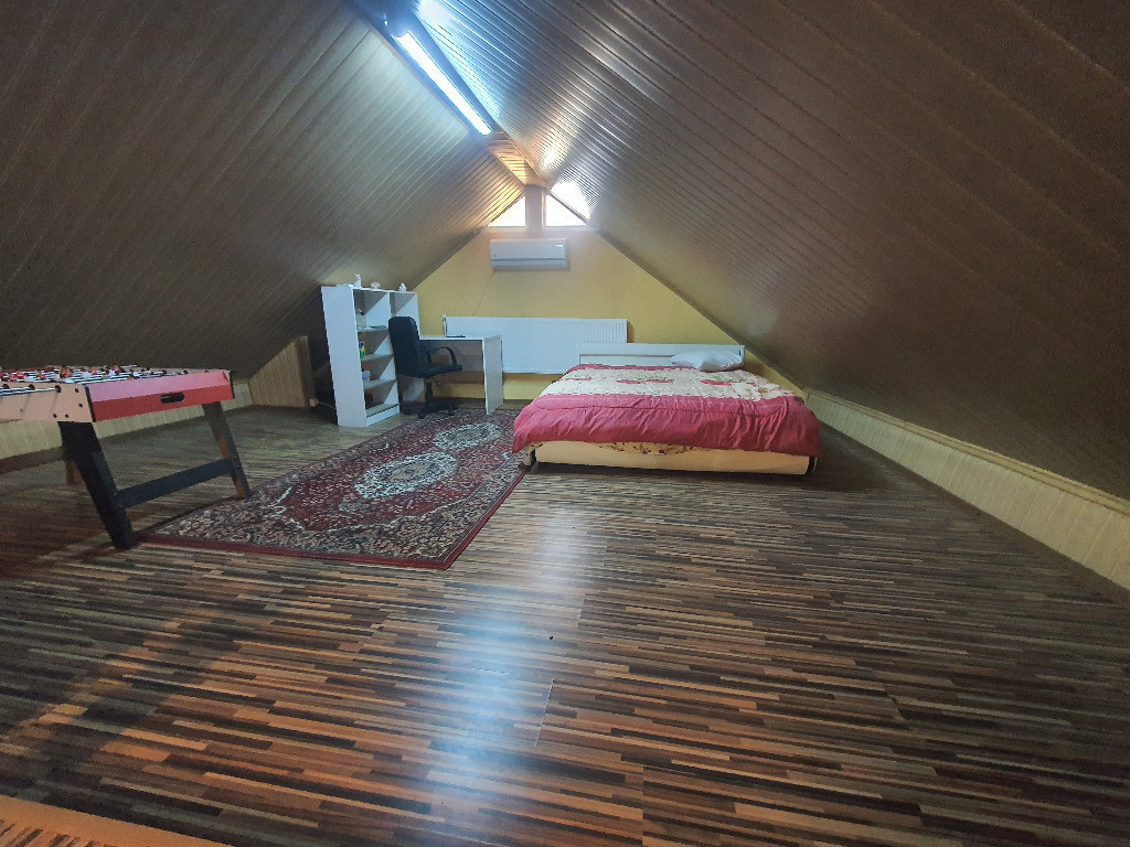 PROPRIETAR - Vând casă în Tudor Vladimirescu-la 30 - 40 minute de Galați "la cheie", amplasată într-o zonă liniștită, ferită de inundații, cu vedere spre mănăstire și oferă spații generoase în fiecare din cele 5 camere, 1 zonă de dining, 1 living. Terenul are o suprafață de 520 mp, cu amprenta casei de aprox. 140 mp+ magazie, foișor și o suprafață utilă de 250 mp. Este finalizată în 2012 și se prezintă decomandată la Parter, iar Mansarda e nedecomandată. Confort 1- mobilată și utilată complet.( combină frigorifică, congelator cu 6 sertare, 2 cuptoare cu MW, 2 hote, 2 tv-uri smart, aragaz , plită pe gaz, mașină de spălat vase, mașină de spălat rufe cu o capacitate de 8 kg, convectoare electrice). 2 Bucătării 2 Băi Scară interioară Balcon Foișor mobilat și închis. Structura de rezistență: beton + bolțari; Utilități: curent, apă (rețea și puț forat), fosă septică, canalizare( la poartă), centrală pe lemne, 2 AC- uri inverter ( merg și pentru încălzire), CATV, acces la internet, telefon fix, sistem supraveghere video. Are finisaje făcute cu gust și simț de răspundere: uși PVC maro, ferestre PVC alb, ușă metalică la intrare, gresie, faianță, parchet, izolație exterioară de 10 cm. Sonerie la poartă Sistem deschidere electric al porților Puț forat cu hidrofor Redresor pentru centrală Beci Grătar Magazie Curtea e pavată, are pomi fructiferi( măr, prun, smochin)și spațiu verde. În localitate sunt: Grădiniță, 2 școli (primar și gimnaziu), liceu 3 Market-uri "La 2 Pași", "Profi", 3 Farmacii, parc și Târg, serviciu Ambulanță și cabinete medici de familie și veterinar. Se poate achita un avans de 55.000 EUR + restul în rate la notar.