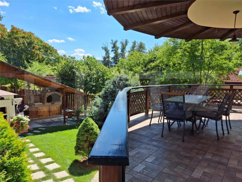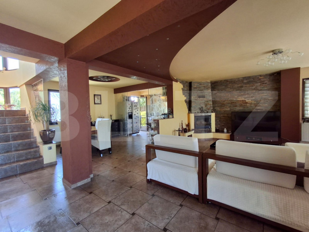 Blitz va propune sa descoperiti o vilă elegantă și perfect întreținută, situată într-una dintre cele mai căutate zone ale Iașului – Bucium. Cu o suprafață utilă de 240 mp, cu tot cu terasele 319 mp și un teren generos de 825 m², această casă este ideală pentru o familie care dorește liniște, confort și rafinament la doar câteva minute de oraș. Pretul este 425000 negociabil, proprietarul accepta o transa cash/credit de 350000 euro si restul prin rest de plata (notarial), daca este cazul. - Detalii și avantaje principale Construită în 2009, renovată complet în 2020 – totul modern și pregătit pentru mutare imediată. 7 camere spațioase și luminoase, amenajate cu gust. Finisaje premium – parchet din lemn masiv, tâmplărie tripan, acoperiș GERARD, sisteme automate (poartă, garaj). Securitate completă – sistem de alarmă, supraveghere video, dedurizator și filtru de apă cu osmoză inversă. Curte superbă, amenajată cu foișor, bucătărie de vară, grătar și sistem automat de irigații. Garaj încăpător, zonă de fitness și saună la demisol. - Compartimentare inteligentă Demisol: garaj, cameră tehnică, spațiu de spălat/spălat, spațiu tehnic, camară, sală de fitness, zonă pentru saună, cramă - suprafață totală 63.48 mp Parter: living generos cu zonă de dining, bucătărie complet utilată, birou (poate fi dormitor), baie cu duș tip hidromasaj - 92.62 mp + 48.17 mp terase Etaj: dormitor matrimonial cu baie și dressing proprii, două dormitoare mari cu terase și dressing, baie modernă suplimentară - 84.45 mp + 31 mp terase - Exteriorul face diferența Curtea este un adevărat colț de relaxare, perfect întreținută, cu gazon verde, terase pavate și spațiu suficient pentru piscină. Foișorul și bucătăria de vară fac din această proprietate un loc ideal pentru seri liniștite sau petreceri cu prietenii. - Localizare Zona Bucium oferă liniște, aer curat și acces rapid către centrul orașului. Drum asfaltat, vecinătăți civilizate, peisaj natural – un echilibru perfect între urban și natură. - De ce merită văzută Această casă oferă tot ce ți-ai putea dori: spațiu, confort, siguranță, design și un cadru relaxant. Totul este gata de mutare — trebuie doar să îți aduci lucrurile personale! Cod ofertă / ID BLITZ: P167345 Id intern: P167345