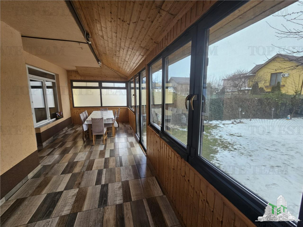 In plus casa are si o terasa frumoasa inchisa cu lemn si geamuri termopan glisante 25 mp (incalzire in pardoseala, aer conditionat, sistem pentru videoproiector)