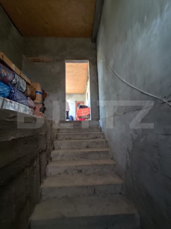 Catalin Manolache-Specialist Broker Blitz Imobiliare Iasi va propun spre vanzare o casa de vanzare in Tutora, cu o suprafata utila de 277 mp utili si o suprafata utila totala de 350 mp. Deschidere de 27 ml la strada asfaltata. Suprafete si compartimentari: Beci-18 mp din beton, cu placa izolata Parter: 121 mp-living foarte spatios, 2 dormitoare, baie, bucatarie, camera tehnica, bucatarie exterioara tot in cadrul constructiei, terasa Etaj: 138 mp, necompartimentat, cu acces prin scari exterioare betonate+ terasa 24 mp- se pot amenaja aici inca 5 camere si baie, structura de beton la etaj Pod- spatiu depozitare Stadiu constructie+ acte Cladirea este construita si acoperita. La parter avem glet, instalatii electrice sanitare si termice trase, baie functionala, cu WC,cada, chiuveta, boiler, parchet hol, camera. Are caloriferele montate, tevile trase, trebuie doar centrala Geamuri termpan cu tamplarie PVC Etaj: necompartimentat Necesita: Izolatie exterior, centrala, reparatii, var, parchet/gresie la parter Etaj: de la stadiul la rosu Utilitati: apa si energie electrica trase, fosa, iar canalizarea si gazul se afla in fata portii, trebuiesc doar conectate la proprietate. Pretul vanzarii este unul deosebit, raportat la varsta vanzatorilor si la domiciliul lor actual. Cladirea se preteaza pentru camin de batrani, gradinita, after school, cabinete, birouri sau pentru 2 familii. Va astept la vizionare! Cod ofertă / ID BLITZ: P151342 Id intern: P151342