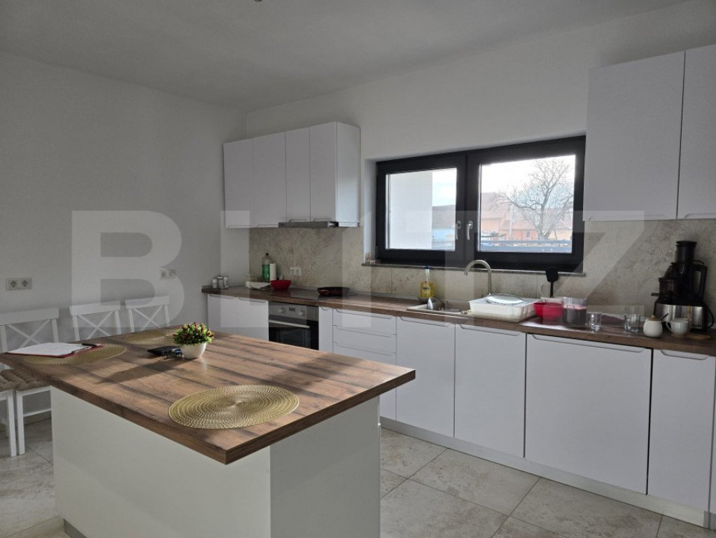Anunț vânzare casă modernă, complet utilată și mobilată, 200 mp, teren generos, toate facilitățile incluse Vă prezentăm o locuință deosebită, bine compartimentată, cu o suprafață totală de 200 mp (160 mp utili), ideală pentru o familie care dorește confort și funcționalitate. Casa este situată într-o zonă liniștită, având toate dotările necesare pentru un trai modern. Descriere proprietate: 2 dormitoare spațioase – amenajate cu grijă, oferind confort maxim. Living generos – perfect pentru momentele de relaxare și socializare. Bucătărie mare, modern amenajată – dotată cu electrocasnice de ultimă generație, complet utilată. Garaj inclus, lipit de casă – acces ușor și practic. Spațiu tehnic dedicat – prevăzut pentru centrală, mașină de spălat, uscător de rufe. Cămară mare – pentru depozitarea alimentelor. Dressing spațios – organizare eficientă a garderobei. Hol generos – elegant și primitor. Terasă mare în spatele casei – loc perfect pentru relaxare și activități în aer liber. Curte amenajată: Gazon bine întreținut și copaci ornamentali care oferă un cadru natural și plăcut. Caracteristici tehnice și avantaje: Izolație dublă: atât la partea inferioară, cât și la tavan. Izolație exterioară realizată cu polistiren de 10 cm (densitate 100). Pod pe toată suprafața casei, oferind spațiu suplimentar de depozitare. Acoperiș din țiglă de beton – durabilitate și estetică. Pregătită pentru amplasarea de panouri fotovoltaice – investiție în energie verde. Această casă reprezintă combinația perfectă între design, confort și eficiență energetică. O alegere excelentă pentru cei care doresc să se bucure de o locuință complet echipată, gata să devină "acasă". Contactați-ne pentru mai multe detalii sau pentru a programa o vizionare! Cod ofertă / ID BLITZ: P137862 Id intern: P137862