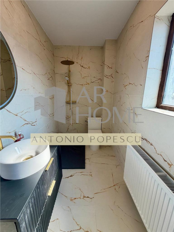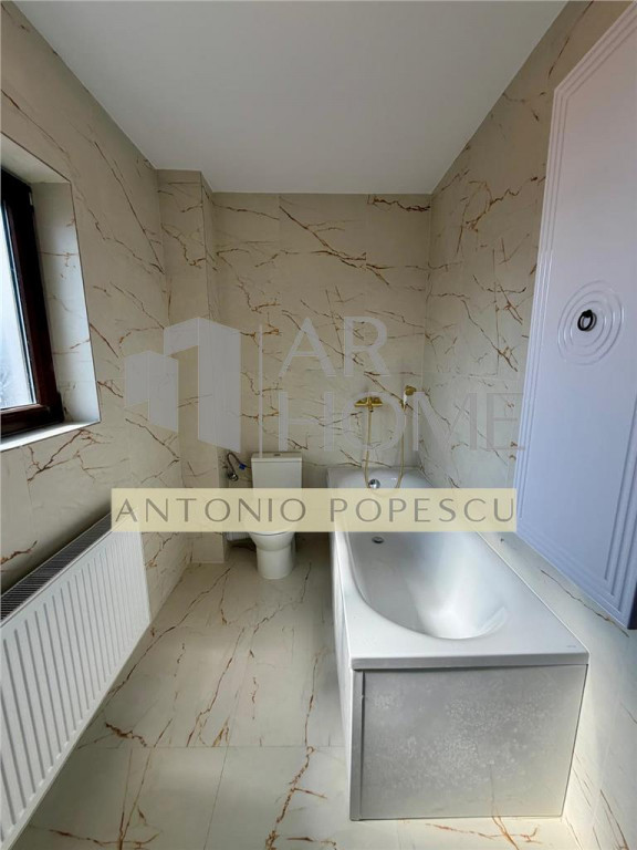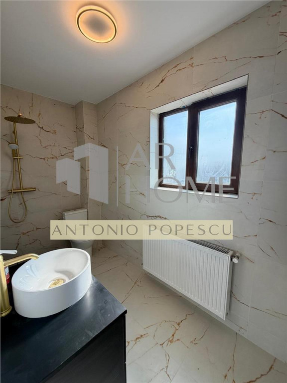 Vanzare casa 3 camere, in Ploiesti, zona Albert. Imobilul se afla intr- o zona de case nou construite, pe o strada privata fara trafic auto. Este construit in anul 2019 cu fundatie de beton armat, structura pe cadre de beton, peretii din caramida Porotherm inclusiv cei de compartimentare interioara, placa de beton pe fiecare nivel, tencuit la interior si izolat termic la exterior cu polistiren expandat EPS 80. Acoperisul este drept, tip terasa necirculabila, izolat termic cu 20 cm XPS si hidroizolatie. Amprenta casei este de 70,25 mp, suprafata construita desfasurata 140,50 mp, suprafata utila 119 mp compartimentata astfel: Parter: hol, living, dinning, bucatarie si baie; Etaj: 2 dormitoare cu bai proprii si terasa, hol; Terenul are o suprafata de 445 mp, deschiderea de 15 ml. Dotari exterioare: teren imprejmuit cu gard de beton si fier, gazon, sistem de irigatie automatizat cu aspersoare, vopsea decorativa, terase placate cu marmura, alei pietonale si auto betonate si pavate, usa intrare metalica, vopsea decorativa. Dotari interioare: tamplarie PVC cu geam termopan, usi interioare celulare Porta Doors, centrala termica pe gaz, calorifere din otel, pardoseli placate cu marmura alba, parchet laminat in dormitoare, scara de beton placata cu marmura, vopsea lavabila etc. Utilitati: apa, lunina, gaz, canalizare. Pret: 264900 euro.