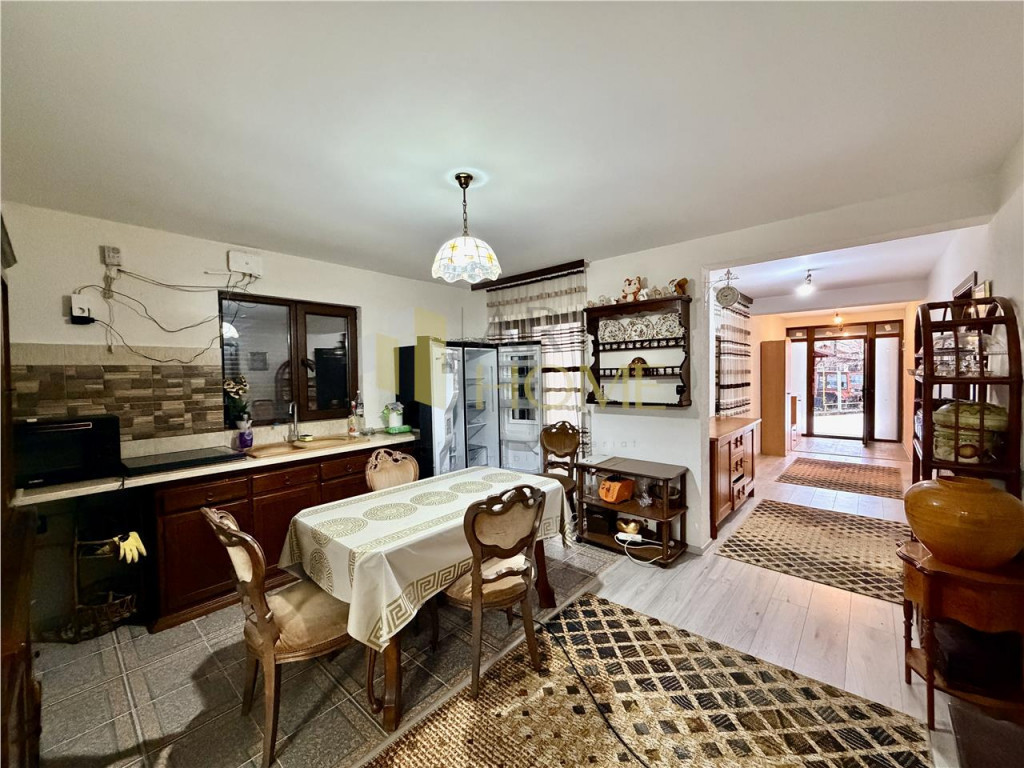 Comision 0 cumparator! Vanzare casa 3 camere, 2 bai, anexa bucatarie de vara si terasa, teren 1118 mp, Pleasa, la 6 km fata de Ploiesti. Imobilul a fost renovat complet si consolidat in anul 2021 cand a fost turnata si placa peste parter. Consolidarea a constat in dublarea cu caramida portanta a peretilor initiali si turnare grinzi de sustinere. Acoperisul este din tabla ondulata, sarpanta lemn noua, izolata pe exterior cu polistiren de 10 cm, decorativa cauciucata. Casa este compartimentata decomandat, pe parter, avand suprafata utila de 100 mp anexa 15 mp. Dispune de urmatoarele imbunatatiri si finiaje: gresie, faianta, parchet, tamplarie PVC cu geam termopan, rulouri exterioare la geamuri, usi interior MDF, radiatoare aluminiu. Se vinde la pretul de 169000 EURO.