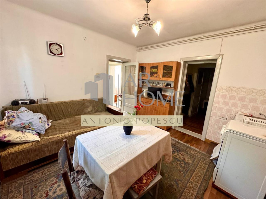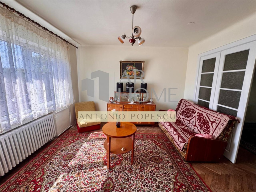Imobilul este construit in anul 1970 cu fundatie de beton armat, peretii din caramida presata tencuiti interior/ exterior, placa de beton pe fiecare nivel inclusiv intre etaj si pod, acoperis din tabla zincata si are ca vecinatati Mega Image, mijloc de transport in comun, Profi, parc, scoli, gradinite etc. Amprenta casei este de 73 mp, suprafata construita desfasurata 157 mp, suprafata utila 120 mp compartimentata astfel: Subsol: 2 camere in suprafata de 11 mp; Parter: SAS, hol, living, bucatarie, camara, baie si casa scarii; Etaj: hol, baie, dormitor 1 si dormitor 2 cu dressing, posibilitate amenajare baie sau birou, si pod. Terenul are o suprafata de 150 mp. Dotari: teren imprejmuit cu gard din sipca metalica, usa intrare din fier, usi interioare din lemn, tamplarie PVC cu geam termopan, instalatia termica pe cupru, calorifere din fonta, parchet din lemn masiv in camere si ciment mozaicat pe holuri, vopsea lavabila etc. Utilitati: apa, lumina, gaz, canalizare. Imobilul este pretabil atat ca locuinta, cat si pentru diferite activitati comerciale precum spatiu birouri, cabinet medical etc. Pret: 184900