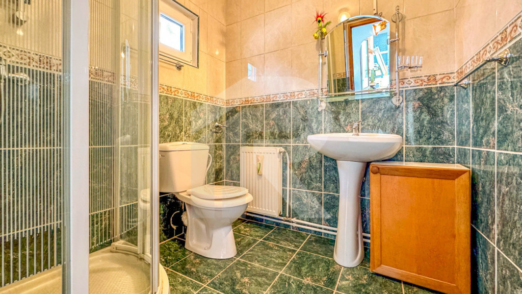 Casa se afla intr-o zona retrasa si linistita, pe strada Somes, nr 4B in orasul Baicoi, in proximitate de DN1, la doar o ora de mers cu masina de Bucuresti. Dispune de: acoperis Lindab, centrala termica, garaj, atelier de creatie (6m inaltime), 2 seminee, tamplarie termopan, izolatie termica partiala, gratar din caramida, 2 terase, gard de fier forjat, bucatarie de vara, pod, camara etc. Funcționalitate versatilă – rezidențială sau sediu reprezentativ pentru companie. Dispune de 356 mpc dintre care 288mpu (287 mpc construiti in 1994 si 69 mp construiti in 1975). Casa dispune de curte si gradina separata de cea a vecinului, doar cei 69.3mp construiti pe parterul din fata au deasupra etajul vecinului, in rest casele sunt delimitate de un perete comun dublu. Se accepta schimb cu apartament in Bucuresti. Pentru mai multe detalii ma puteti contacta! Id intern: PB20774