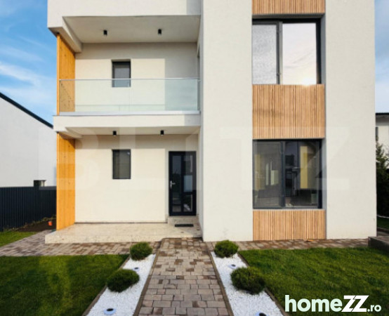 Spatii vitrate mari, iar casa este superb amplasata astfel incat apusurile de soare sunt surprinse excelent din casa, iar suplimentar asigura confort termic, care se va regasi in costuri reduse de intretinere a casei.;