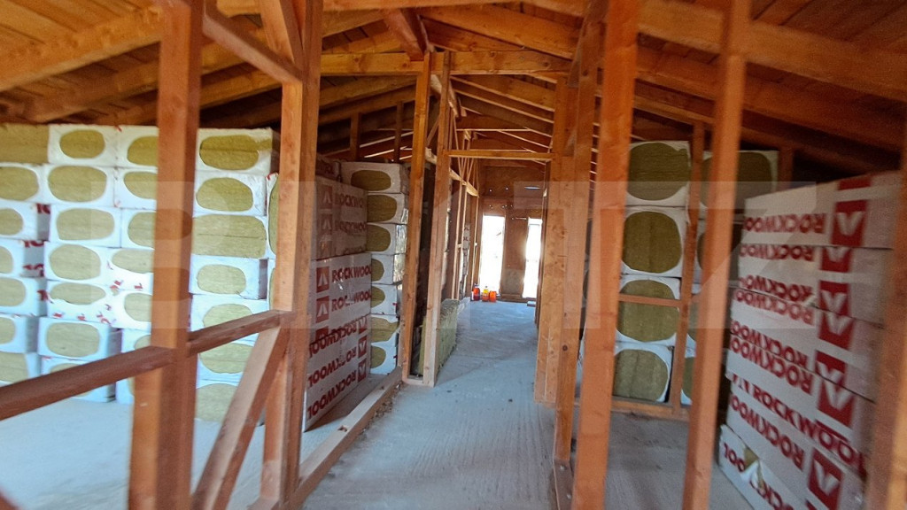 Această casă modernă se află pe primul rând de locuințe noi de la ieșirea din Cristian spre Vulcan, într-o zonă liniștită, cu drum pietruit și iluminat stradal. Casa este construită pe un teren de 750 mp si are o suprafață utilă de 165 mp și o suprafață construită de 105 mp (fără terasă). Suprafața desfășurată este de 210 mp, iar terasa de 23 mp completează perfect zona exterioară. Toate utilitățile sunt disponibile: curentul electric și fibra optică sunt subterane până la casă, gazul este la limita de proprietate, iar apa și canalizarea sunt deja instalate în curte. Structura casei este solidă, cu fundație continua din beton armat, la parter fiind pereți din cadre de beton armat plus cărămidă, iar mansarda din lemn, tratată pentru ignifugare și protecție împotriva insectelor și ciupercilor. Acoperișul este din lemn, acoperit cu țiglă ceramică. Compartimentarea interioară este funcțională: la parter se află camera de zi, bucătăria, grupul sanitar și spațiul tehnic, iar la mansardă trei dormitoare, două băi și un spațiu de depozitare. Poziționată strategic, casa oferă priveliști superbe către Poiana Brașov, Munții Bucegi și Piatra Craiului. Va asteptam cu drag la vizionare! Cod ofertă / ID BLITZ: P134282 Id intern: P134282