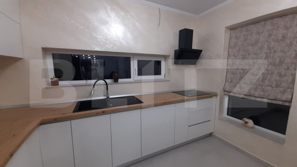 Casă individuală de vanzare Zona Livezeni Casa este în Livezeni este un asamblu rezidențial alcătuit din case individuale poziționate într-o zonă liniștită, lipsită de zgomot unde te poți bucura de natură. Casă individuală de tip P+E suprafața desfășurată 180mp, utilă 120 mp, suprafață teren 470 mp ce include și grădina,două balcoane, terasă. Casa este gândită și proiectată cu o arhitectură modernă fiind compartimentată la parter cu un hol o baie, cameră tehnică, bucătărie deschisă cu loc de servit ce se continuă cu un living spațios, ambele cu acces direct către terasă. La etaj se află cele trei dormitoare, un dressing o baie. Casa construita in 2021 , finalizata in 2023, strazile sunt asfaltate, curtea este pavata , loc de parcare pt 4 masini . Casa se compartimenteaza astfel : - la parter : hol , baie , Living cu bucatarie open - space , cu iesire pe terasa, camara si camera tehnica. -la etaj : 3 dormitoare , 2 dintre acestea au iesire pe balcon , baie , dressing Casa dispune de centrala termica Romstal cu încălzire în pardoseală P+E Utilități: curent,apă,canalizare,gaz, CATV, tel, internet Casă este mobilată și utilată. Electrocasnice profesionale, cuptor încorporat electric, microunde încorporat, mașină de spălat vase încorporat, plită pe inducție și frigider. Camera tehnică cu mașină de spălat și uscat rufe. Curtea casei gazon ,pavată și se pot parca 4 mașini. Va asteptam la vizionare! Cod ofertă / ID BLITZ: P134317 Id intern: P134317