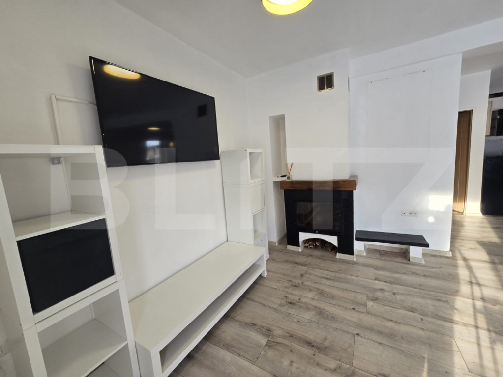 Blitz îți propune spre închiriere o casă individuală situată în cartierul Bună Ziua, în zona străzii Mihai Românul – o zonă aerisită, cu acces rapid către oraș, magazine și stații de transport în comun în apropiere. Casa este construită în 2014 și este dispusă pe două niveluri, având o compartimentare practică și bine gândită. La parter găsești un living generos cu șemineu funcțional – perfect pentru serile liniștite – bucătărie deschisă, complet utilată (aragaz, cuptor electric, mașină de spălat vase) și o baie cu cadă. Spațiul este luminos și primitor, ideal pentru timp petrecut în familie sau cu prietenii. La etaj sunt trei dormitoare, dintre care unul va fi mobilat de către proprietar, în funcție de nevoile viitorului chiriaș. Tot aici se află o baie spațioasă, cu geam pentru aerisire naturală și cadă, plus o debara utilă pentru depozitare. Casa beneficiază de centrală termică proprie, izolație exterioară și geamuri termopan, ceea ce asigură un confort termic bun pe tot parcursul anului. Se închiriază parțial mobilată, oferindu-ți libertatea de a o amenaja după propriul gust și stil. Un mare plus este curtea – frumos amenajată, cu foișor și loc de grătar – un spațiu perfect pentru relaxare sau pentru seri petrecute în aer liber. Disponibilă imediat. Dacă îți dorești intimitatea unei case, dar cu acces rapid către oraș, te invit la vizionare. Cod ofertă / ID BLITZ: P162256 Id intern: P162256