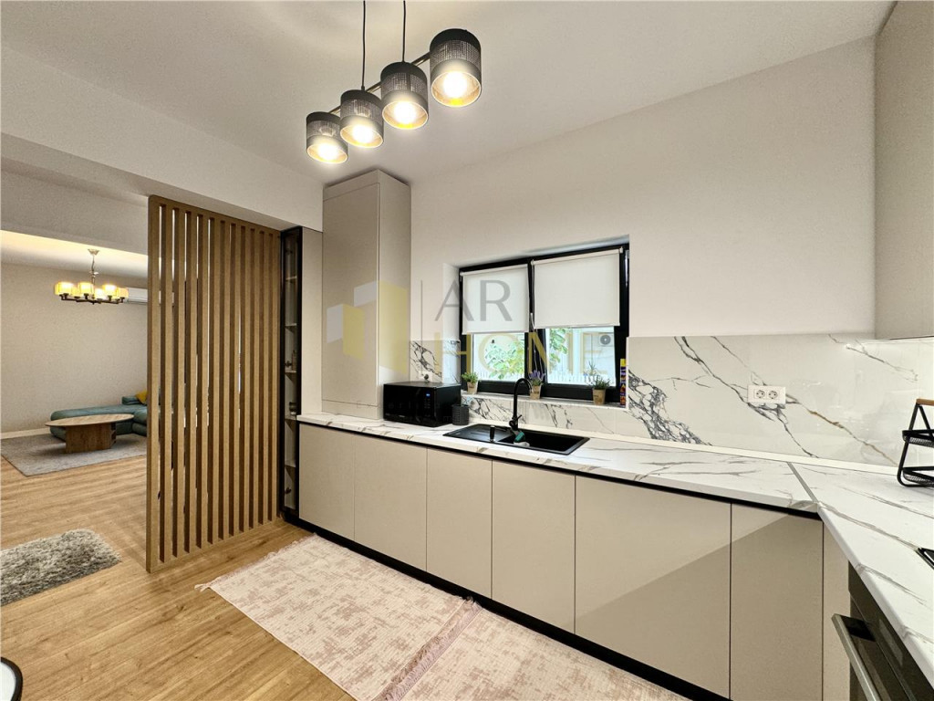 Suprafata utila este de 100 mp, compartimentati astfel: camera de zi open space cu bucataria, dormitor matrimonial cu baie si dressing, 2 dormitoare, baie, hol.