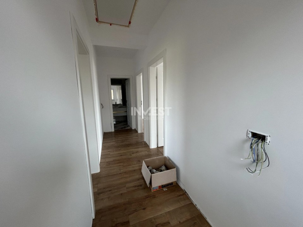 Invest Imobiliare vă recomandă o casă individuală cu regim de înălțime P+1E+pod, având o suprafață utilă de 112 mp și o suprafață construită de 136 mp. Imobilul face parte dintr-un complex rezidențial format din 32 de locuințe individuale și de tip duplex, cu stradă betonată și iluminat stradal realizate de dezvoltator, oferind acces rapid atât la facilitățile zonei, cât și la oraș. Casa dispune de 4 camere, fiind compartimentată astfel: Parter: hol, grup sanitar, living și bucătărie cu acces direct la terasă; Etaj: hol, grup sanitar, 3 dormitoare și balcon; Pod: placă de beton peste etaj, izolat, ideal pentru spațiu de depozitare. Terenul aferent locuinței variază între 350 mp și 543 mp. Proprietatea se află în stadiul de construcție, având deja fundația realizată. Structura de rezistență este pe cadre de beton, cu zidărie din cărămidă și izolație termică de 100 mm. Casa beneficiază de încălzire prin pardoseală, cu pompă de amestec și termostate individuale pentru zona de zi și noapte. Terasele, trotuarele și locurile de parcare sunt amenajate cu beton amprentat, iar poarta este automatizată. Pentru finisajele interioare, se oferă bugete prestabilite generoase. Imobilul se predă racordat la toate utilitățile: apă, gaz, electricitate și canalizare. Prețul afișat include TVA de 21%, cu posibilitatea achiziționării printr-un avans minim de 15%. *Pozele sunt cu titlu de prezentare, fiind de la case finalizate anterior de același constructor. Pentru mai multe detalii sau pentru a stabili o vizionare, vă rog să mă contactați telefonic, prin SMS sau WhatsApp. Id intern: P6114