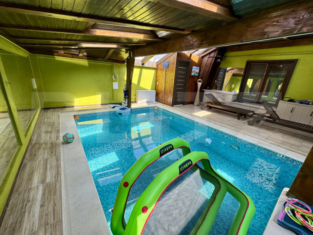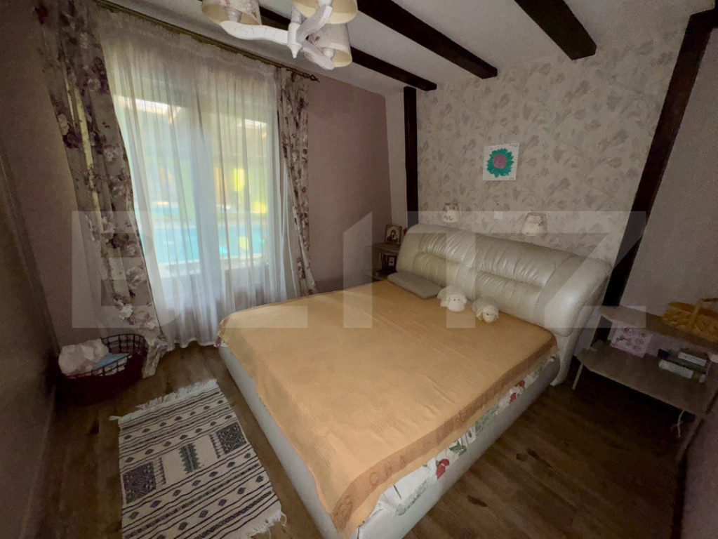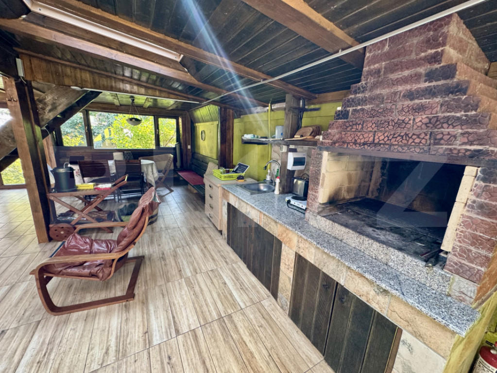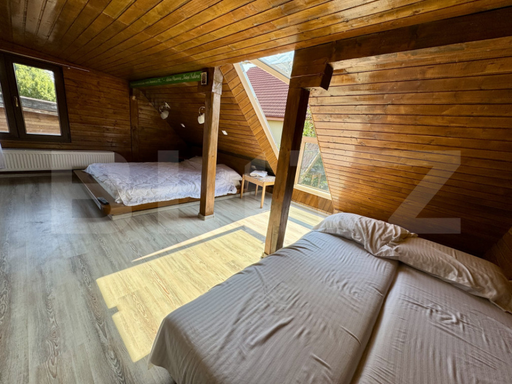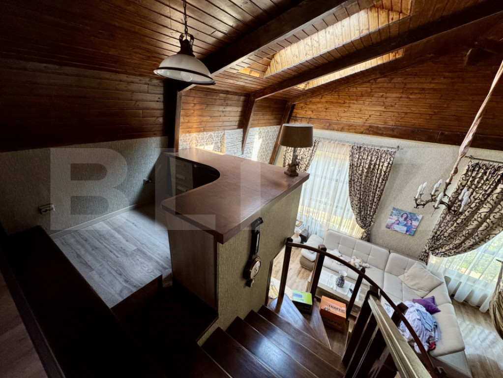 BLITZ vă propune spre închiriere un ansamblu de două case construite pe structură de lemn, cu o atmosferă de vacanță, ideal pentru relaxare și confort, situat pe un teren generos de 600 mp situat pe strada Diana nr. 12. Proprietatea principală, cu o suprafață de aproximativ 80 mp utili, este dispusă pe parter și mansarda. La parter regăsim un living open space cu bucătărie complet utilată (plită, cuptor, frigider, mașină de spălat vase și rufe), un dormitor, o baie, o cămară practică cu acces către zona piscinei și un șemineu funcțional pentru serile răcoroase. Mansarda oferă un spațiu ideal pentru birou, un dormitor open space și un dormitor închis. Casa este dotată cu sisteme de aer condiționat și sistem de alarmă monitorizat de firma de securitate NEI. A doua construcție, cu o suprafata aproximativa de 60mp destinată activităților de recreere, sau se poate inchiria in regim hotelier, aceasta dispune la parter de o piscină spațioasă, zonă de grătar, baie cu duș și spațiu de luat masa. La mansarda se află o cameră dublă cu aer condiționat, TV și balcon propriu. Încălzirea este prin pardoseală la parter și prin calorifere în dormitoare. Curtea oferă numeroase facilități suplimentare: un garaj pentru doua masini, o sera pentru legume, un iaz cu pești exotici și o fântânită decorativă, completând perfect cadrul natural și relaxant al proprietății. Din totalul terenului, 250 mp sunt spațiu liber, ideal pentru activități în aer liber. Va astept la vizionare Cod ofertă / ID BLITZ: P149684 Id intern: P149684