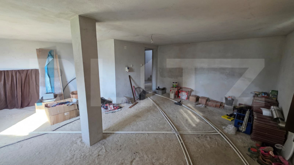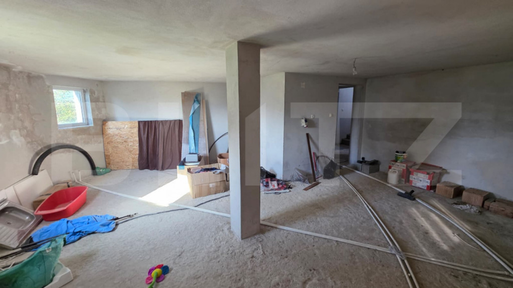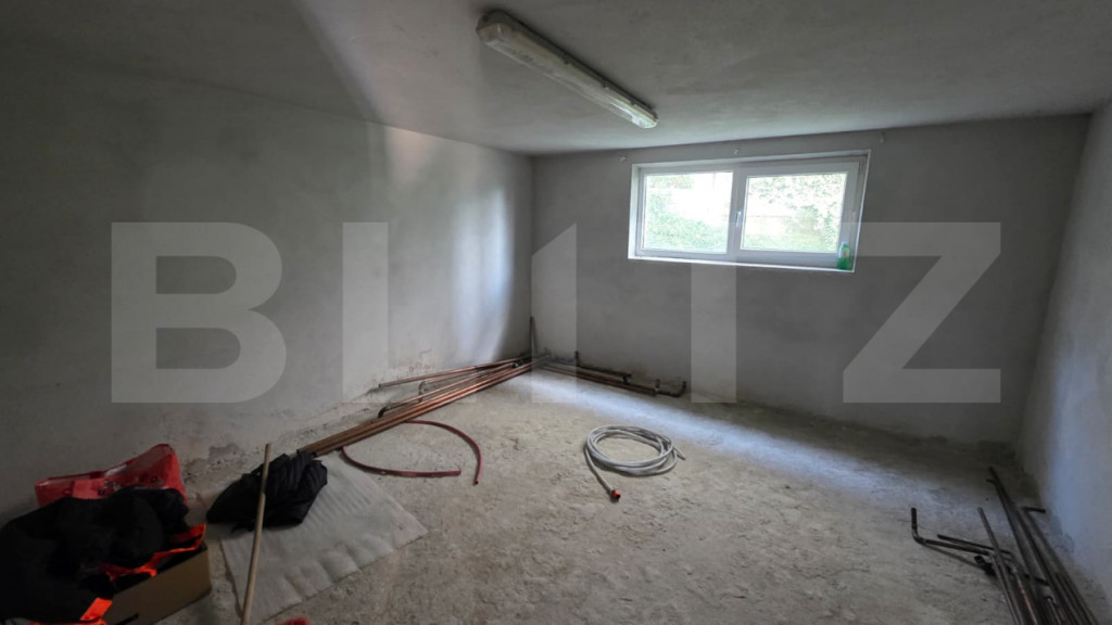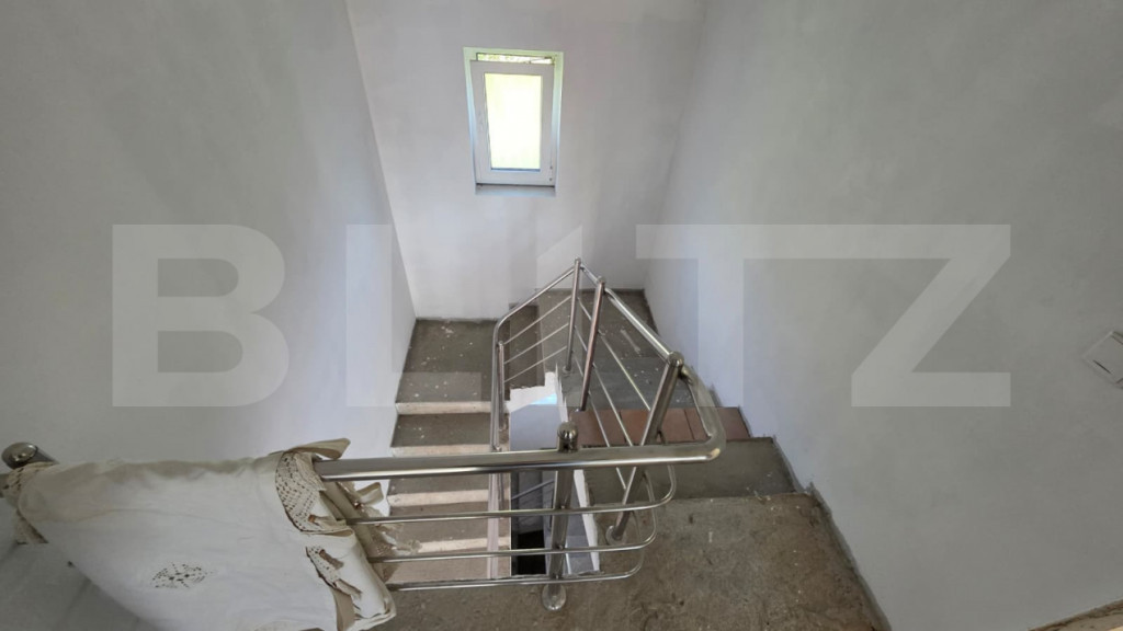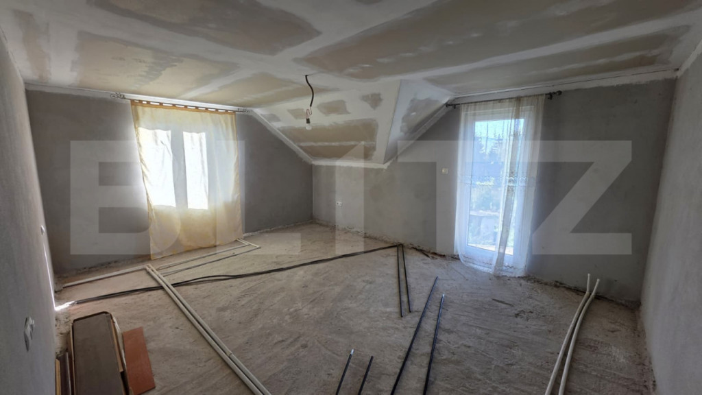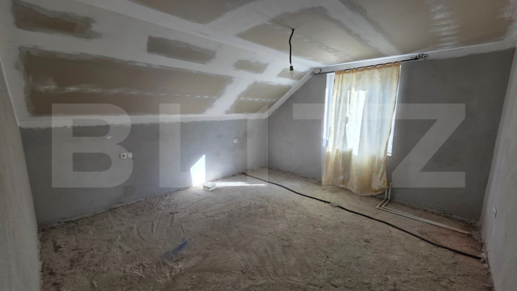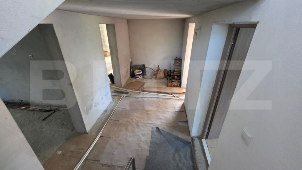 Blitz vă propune spre vânzare o casă spațioasă de 240 mp, amplasată pe un teren generos de 10 ari, într-o zonă liniștită, perfectă pentru familii cu copii sau pentru cei care își doresc intimitate și confort departe de agitația orașului. Proprietatea este bine compartimentată, dispusă pe demisol, parter și etaj, oferind 4 dormitoare, living luminos, bucătărie închisă și 2 băi spațioase. La parter se află un dormitor și o baie finalizată, iar casa este parțial locuibilă. Beneficiază de toate utilitățile, este izolată termic și dotată cu centrală termică pe lemne nouă cu puffer. O alegere ideală pentru o locuință primitoare, cu spațiu și liniște. Cod ofertă / ID BLITZ: P153867 Id intern: P153867