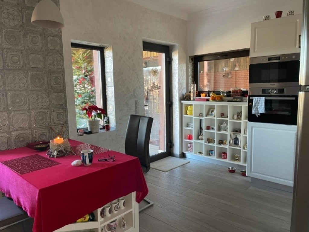 Vand casa situata in loc Mehedinta ,suoprafata construita 260 mp ,an constructie 2022 , mobilata si utilata.( inclusiv echipamente agricole,se vinde cum este in poze) Parterul este compus din bucatarie ,dressing room ,dormitor ,living, hol intrare , baie cu cabina de dus walk in si instalații electrice si sanitare pregătite pentru cada . Etajul este compus din birou, 2 dormitoare cu balcon, baie fara cabina de dus ( cu masina de spalat si uscator) si hol. Foisorul este construit din lemn si caramida Brikston mobilat si utilat (plita ceaun,gratar,plita,cuptor pe lemne ,aragaz,frigider,balansoar,semineu pe gaz, chiuveta cu boiler electric,cismea), balansoar ,inchis cu folie cristal si plase de tantari cu o de suprafata56 mp. Suprafata totala de teren 996mp cu cultura de zmeuri remontanti,diversi pomi fructiferi,trandafiri dulceata,coacazi , muri,solar 24 mp ,sisteme de irigare prin picatura,gradina cu pergole transafiri cataratori ,tuia ,artar japonez si alte plante/ arbusti decorativi. Utilitati :apa ,gaze,curent electric,canalizare ( pregatita de racordare) panouri fotovoltaice 6 kw cu 2 baterii de 5kw fiecare . Dotari casa:centrala pe gaz BAXI ,incalzire pardoseala parter , geamuri tripan fourseason,mocheta ,parchet Tarkett ,gresie,faianta , usi Porta Doors ,3 unitati de AC de 12btu , termoizolatie exterioara 20 cm parter respectiv 40 cm etaj , pod izolat termic ( acoperiș si tavan etaj ).Mobila este achizionata de la Mobexpert si personalizata, electrocasnice Hotpoint, Bosch . Diverse:alei beton amprentat ,pod cu acces din interior ,pergola auto, monitorizare video , alei perimetrale grădină din pavele , posibilitate de extindere număr panouri fotovoltaice. casa se afla pe o strada secundare , nu pe șoseaua principală,la 1 km de pădure , 2 km de lacul de pescuit si 25 km de A7. Pentru detalii/fotografii/oferta , va rog contactati telefonic sau wathapp . Colaboram cu agentii imobiliare .