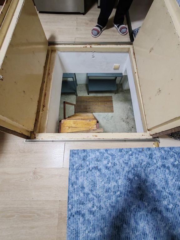 Din bucatarie se face accesul spre o pivnita incapatoare, cu pereti din beton si usi de acces metalice, groase de 5 cm, perfecta pentru depozitare de produse alimentare.