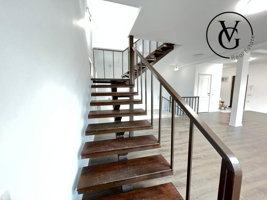 VG Real Estate vă propune spre achiziție o casă modernă, spatioasa situată în zona Otopeni, Ilfov, ideală pentru cei care își doresc confort, spațiu și funcționalitate, cu acces facil către oraș. Proprietatea beneficiază de o amplasare excelentă, fiind situată în proximitatea viitoarei stații de metrou, precum și în apropierea supermarketurilor și a zonelor verzi, toate la doar 5–10 minute de mers pe jos. Compartimentare inteligentă (D+P+E): și este construită pe un teren de 218 mp, având o suprafață utilă totală de 174 mp. Locuința beneficiază de centrală proprie, fiind racordată la toate utilitățile – electricitate, canalizare și gaz. Demisol: • Cameră open space – ideală pentru depozitare sau amenajarea unei zone de relaxare • Baie cu cabină de duș • Cameră tehnică • Acces atât din interior, cât și direct din curte Parter: • Living generos cu bucătărie open space • Baie de serviciu Etaj: • 3 dormitoare luminoase • 2 băi (inclusiv baie proprie pentru dormitorul matrimonial) • Dormitor matrimonial cu baie proprie Exterior: • Curte proprie cu locuri de parcare Proprietatea este potrivită pentru o familie care își dorește un cămin confortabil, într-o zonă aerisită, aproape de București, dar ferită de agitația urbană. Pentru mai multe detalii sau pentru programarea unei vizionări, vă stăm la dispoziție. Id intern: P153434