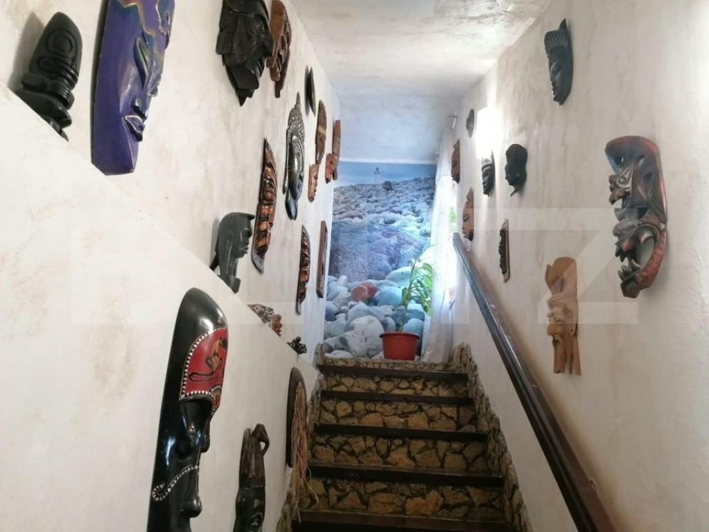 Blitz va propune spre vanzare o casa deosebita, situata la strada asfaltata, la 7 km de oras. In proximitate avem scoala, gradinita, biserica. Casa este compartimentata astfel: Parter: living, 2 dormitoare, bucatarie, baie, hol, bar, casa scarii, spatiu de depozitare Etaj: 2 dormitoare, balcon, baie. Casa dispune de : - o terasa acoperita cu linie gratar( chiuveta, blat, gratar, plita etc); - o anexa de aprox 25 mp cu chicineta, domitor, baie; - o anexa de aprox 25 mp cu 2 camere si baie; - alte 2 terase umbrite pentru petrecerea timpului liber, putand astfel locui aici 3 familii. Proprietatea ofera intimitate, fiind imprejmuita cu gard cu sipca metalica si bordura de beton, gradina amenajata cu brazi tuia, obiecte ornamentale de gradina, pomi: meri, ciresi, visini, pruni. Exista posibilitatea preluarii unui magazin alimentar de dimensiuni mici, ce poate asigura venituri decente. Va asteptam sa vizionati o proprietate deosebita! Cod ofertă / ID BLITZ: P10340 Id intern: P10340