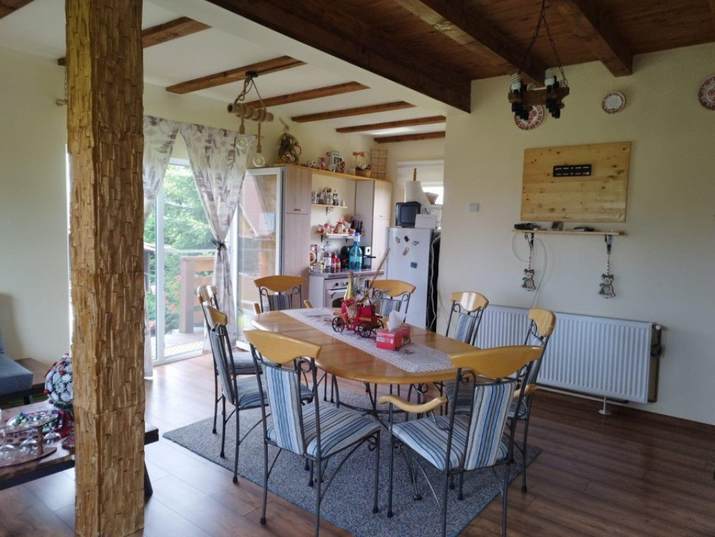 Blitz ofera spre vanzare o casa de vacanta foarte bine facuta si intretinuta ( folosita exclusiv de catre proprietari ) in zona Cabanei Motilor, o locatie tot mai cautata de turisti cu un potential din ce in ce mai bun pentru turism. Cabana se preda mobilata si utilata cu toate cele necesare, este construita pe fundatie de beton in 2015, zidarie din lemn/ bca/ caramida cu regim de inaltime P+M, compusa pe parter din 2 living-uri, 1 baie, 1 terasa, bucatarie, iar pe etaj avem 3 dormitoare, hol si debara. Curtea amenajata cu ciubar, foisor dotat cu gratar/ mini bucatarie, leagan, posibilitate de parcare 2-3 masini si supraveghere video. Casa are o suprafata construita de 120 mp si se afla pe un teren de aprox 350 mp. Accesul se face din drumul asfaltat si pana la proprietate avem un drum pietruit de 150 m aproximativ. Terenul este plat si are o pozitie extraordinara, fiind orientat spre Sud-Vest. Casa are capacitatea de cazare pentru 8-10 persoane. Ca si utilitati avem curent, apa din 3 surse, tv si internet prin satelit, canalizarea la fosa septica iar incalzirea este atat cu pompe de caldura dar si pe lemne avand un sistem de transfer de la semineu in calorifere. Pentru vizionare sau mai multe detalii nu ezitati sa ne contactati. Cod ofertă / ID BLITZ: P90458 Id intern: P90458