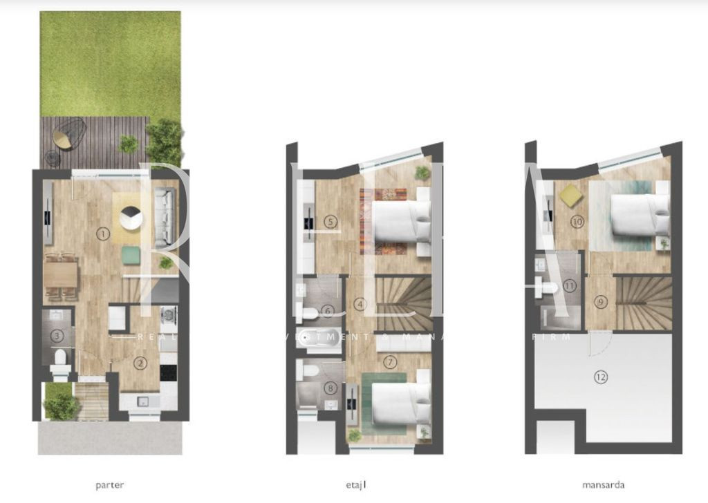 Vă propun spre închiriere o casă modernă și luminoasă aflată la prima inchiriere , mobilată şi utilata complet situată în Pipera, în cartierul ZenVille, o zonă înconjurată de liniște și multă verdeață. Ansamblul oferă acces ușor și rapid, la 7-10 minute cu mașina, la Aeroportul Henri Coandă și la polul principal de birouri situat în Dimitrie Pompeiu și Floreasca. Zona beneficiază de imediată proximitate a mall-urilor Băneasa și Pipera Plaza, precum și a școlilor de prestigiu din zonă, dar și de acces la centura Bucureștiului și la orașele limitrofe. De asemenea, transportul public este disponibil în apropiere, cu stațiile de autobuz pentru R459, 301 și 135. La parterul casei se află bucătăria închisă, camera de zi și zona de servit masa cu acces direct în terasă. Există, de asemenea, un hol cu spațiu de depozitare. Casa este proiectată și construită cu patru grupuri sanitare: un grup sanitar la parter, două băi la etajul 1 și o baie la etajul 2. La etajul 1 se află două dormitoare, ambele cu baie proprie, iar la etajul 2 există un dormitor, o baie și un dressing. Casa este complet finisată cu cele mai calitative materiale și finisaje. La intrare este instalată o ușă din metal. Există gresie și faianță, sunt instalate uși celulare din lemn în interior, ferestre cu geamuri termopane cu trei foi și pereți finisați cu vopsele lavabile. La etajul 2 regăsim un dormitor şi un birou împreuna cu o baie ce le deservesc . Locuința se încălzește individual prin centrală termică proprie și prin încălzire în pardoseală. În ceea ce privește utilitățile (apă, gaze, canalizare, electricitate), există contoare individuale de la ENEL, TV și, desigur, internet. Sunt instalate apometre și contoare individuale. Curtea are 30 mp liberi și este amenajată ca o terasă la intrarea în zona de zi. Ansamblul beneficiază de acces controlat și supraveghere video, iar locul de joacă pentru copii și piscina sunt destinate exclusiv locatarilor complexului. Vă invit la vizionare!
