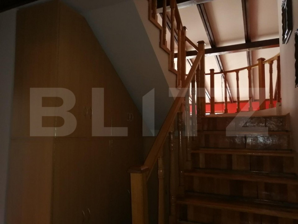 BLITZ va ofera spre vanzare vila individuala exclusivista, amplasata in Chisoda. Casa are o suprafata utila de 500 mp iar suprafata aferenta de teren este de 2000 mp, beneficiaza de foraj de apa la mare adancime, clime, sistem alarma, 2 centrale de incalzire pe gaz, panouri solare. Este dispusa la P+E1+M si dependinte, iar compartimentarea se prezinta astfel: - la parter vom regasi: 1 living care se continua cu bucataria si dinning-ul si un spatiu de relaxare- vizionare tv, 1 hol, 1 dormitor, 1 birou si 1 baie , iar in curte exista 3 garaje. - la etaj sunt 2 dormitoare, 1 camera, dressing, 1 baie; - la mansarda: 1 dormitor, 1 birou, 1 camera de copii, 1 baie. Locuinta ideala pentru o familie numeroasa, dispune de gradina si curte amenajata cu plante, gazon si pomi, bucatarie de vara si foisor. Cod ofertă / ID BLITZ: P6985 Id intern: P6985