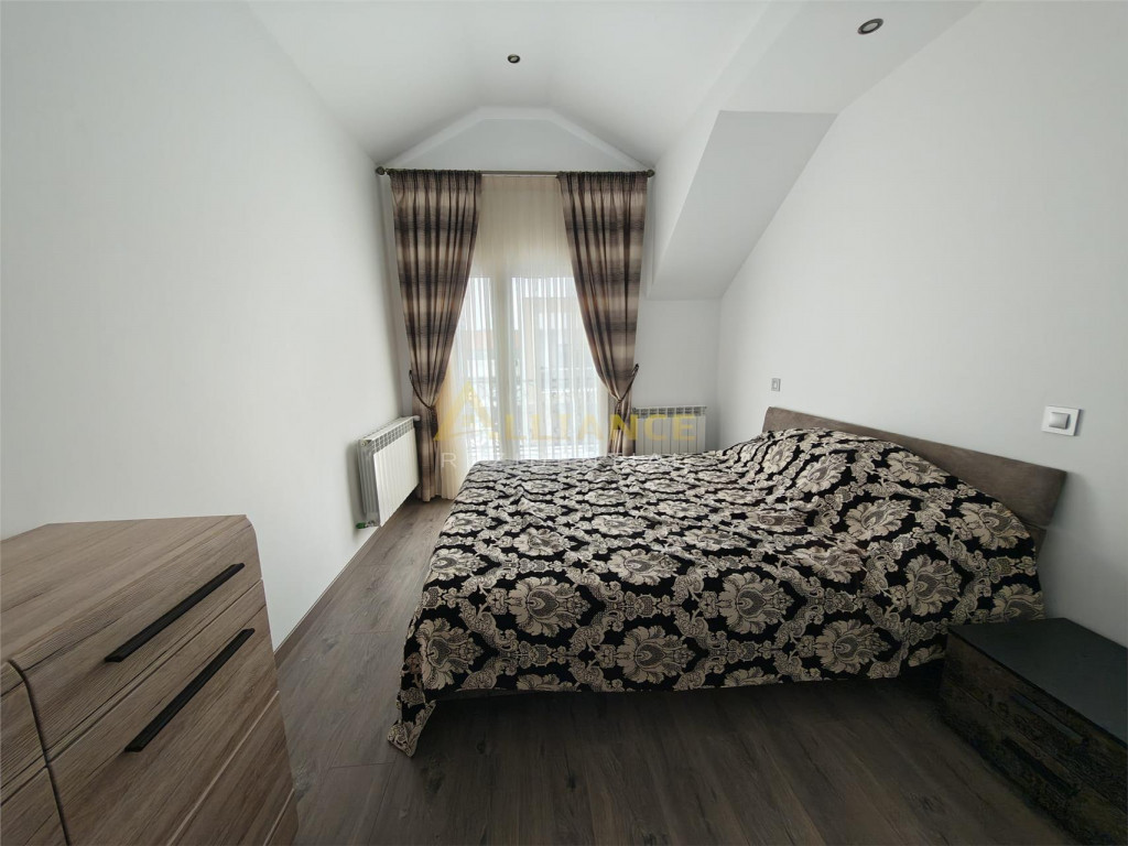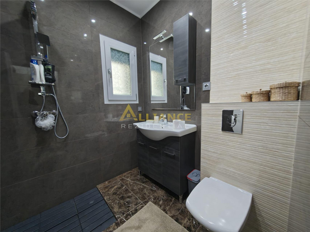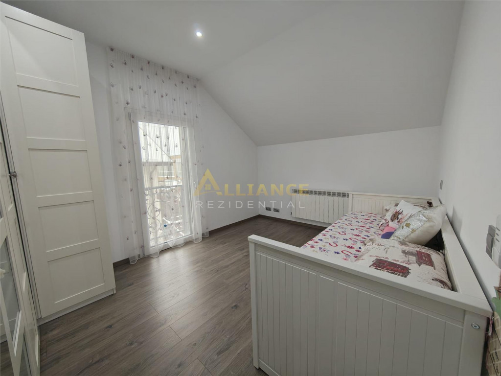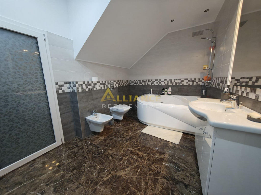 Se ofera spre inchiriere o casa spatioasa, ideala pentru familii numeroase sau activitati rezidentiale, cu o suprafata utila de 193 mp, amplasata pe un teren de 350 mp. Imobilul este excelent compartimentat si dispune de: 5 dormitoare 4 bai dormitor matrimonial cu baie proprie la parter al doilea dormitor matrimonial cu baie proprie la etaj Casa beneficiaza de incalzire in pardoseala, asigurand un confort termic optim. Proprietatea se inchiriaza exact asa cum este prezentata in poze, complet functionala si pregatita pentru mutare. Imobilul este conectat la toate utilitatile: gaz curent electric fosa ecologica put forat Un avantaj important il reprezinta localizarea excelenta, la doar 2 minute de mers pe jos de STV, cu acces rapid catre mijloacele de transport. Nu se accepta animale de companie. Pentru detalii si programarea unei vizionari: Gabi ndash; 0739 922 930