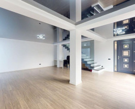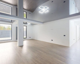 Casa beneficiază de finisaje de calitate, printre care tavan cu membrană Barrisol în living, ferestre tip tripan și încălzire prin centrală proprie pe gaz.
