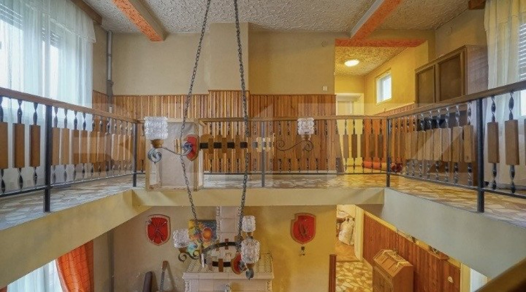 Casă de cărămidă, construită în 1975-1980, situată într- o zonă linistită în apropierea pădurii, în Sacele zona Turcheș, într-un cartier de case. Există posibilitate de reamenajare în pensiune turistică, grădiniță privată sau casă de bătrâni. Casa este ff spatioase, are 7 camere unele ff spatioase, insa necesita renovare.Din anul 1983 de cand a fost construita, nu a mai fost renovata, decat partial...Posibilitate de amenajare a patru apartamente distincte. Casa are 3 fronturi stradale, canalizare, gaz metan, curent mono și trifazic. Regim de înălțime: D+P+E+M. • demisol: garaj, beci si cameră tehnică- 89mp. • parter: bucătărie(24,80 mp), cămară(10,35 mp),baie(7,2mp), hol(7,60 mp), 1 cameră(25 mp), 1 cameră(13,20 mp) living cu șemineu(37 mp), terasă(13mp). • etaj: 5 camere + baie( 115 mp), balcon( 4 mp) si 1 terasă(13 mp), terasă(30 mp). • mansardă: 2 camere, bucătărie, baie. Pardoseală:parchet lemn masiv, marmură(mozaic) și gresie. Suprafată construită: 165 mp. Suprafață utilă: 326 mp. Acoperis: tablă+ țigle. Anexe: magazii(3) și atelier. Suprafață grădină: 600 mp. Cod ofertă / ID BLITZ: P105753 Id intern: P105753