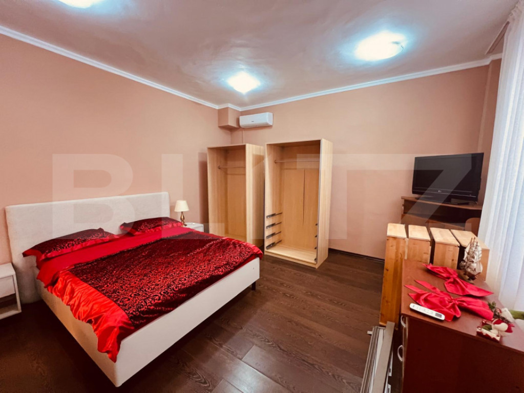 Vă prezentăm spre închiriere o proprietate deosebită, cu o suprafață utilă de 404 mp, ce oferă spațiu generos, confort și o compartimentare excelent gândită, ideală pentru familie numeroasă, birouri, firmă sau activități de tip rezidențial premium. Compartimentare: Parter: 2 camere 1 baie Etaj 1: Living amplu și luminos Bucătărie complet mobilată și utilată Zonă de luat masa 2 camere 1 baie comună Etaj 2: 4 camere fiecare cu baie proprie, oferind intimitate și confort sporit Facilități și avantaje: Proprietate complet mobilată, cu finisaje și dotări de calitate superioară Curte privată de 200 mp, ideală pentru relaxare Foișor amenajat 2 locuri de parcare în curte + locuri de parcare disponibile în zonă Casa se remarcă prin spațiu, funcționalitate și atenția la detalii, fiind potrivită atât pentru o familie, cât și pentru activități precum sediu de firmă, birouri, clinică sau alte utilizări similare. Disponibilă imediat. Pentru informații suplimentare și programarea unei vizionări, vă stam la dispoziție. Cod ofertă / ID BLITZ: P162724 Id intern: P162724