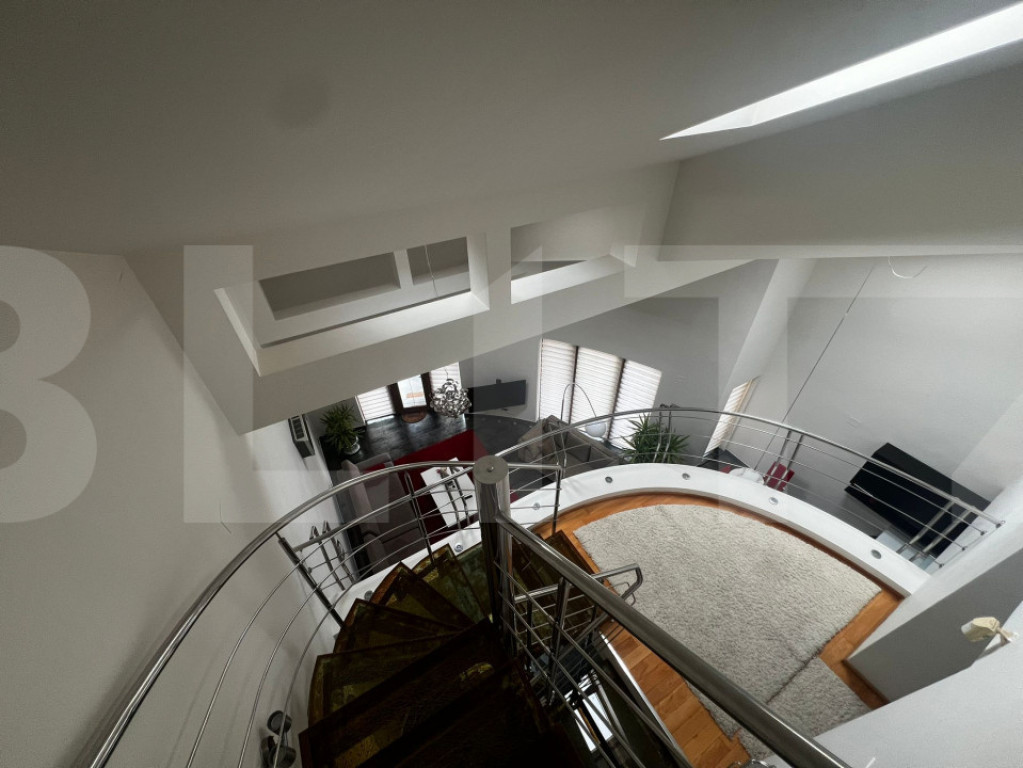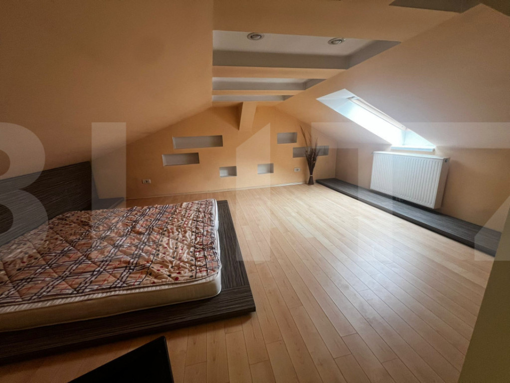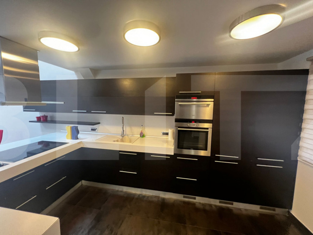 Casă modernă, complet mobilată, cu garaj și grădină – zonă liniștită Agenția noastră vă propune spre vânzare o proprietate modernă cu 5 camere, design contemporan, garaj integrat și grădină, amplasată într-o zonă liniștită, cu acces rapid către mijloace de transport, mall și supermarketuri. Imobilul are o suprafață utilă de 200 mp (fără garaj) și beneficiază de o compartimentare practică, desfășurată pe parter, etaj și mansardă. Dotări și finisaje: -încălzire în pardoseală la parter; -ferestre Velux cu deschidere automatizată și senzori de ploaie; -4 aparate de aer condiționat; -sistem video-interfon; -sistem de alarmă; -scară interioară din inox cu trepte din sticlă securizată, cu design elegant și unic; -finisaje și materiale premium, de la producători de top. ???? Proprietatea se vinde complet mobilată și utilată, fiind pregătită pentru mutare imediată. ???? Pentru mai multe detalii sau programarea unei vizionări, vă stăm la dispoziție. Cod ofertă / ID BLITZ: P160357 Id intern: P160357