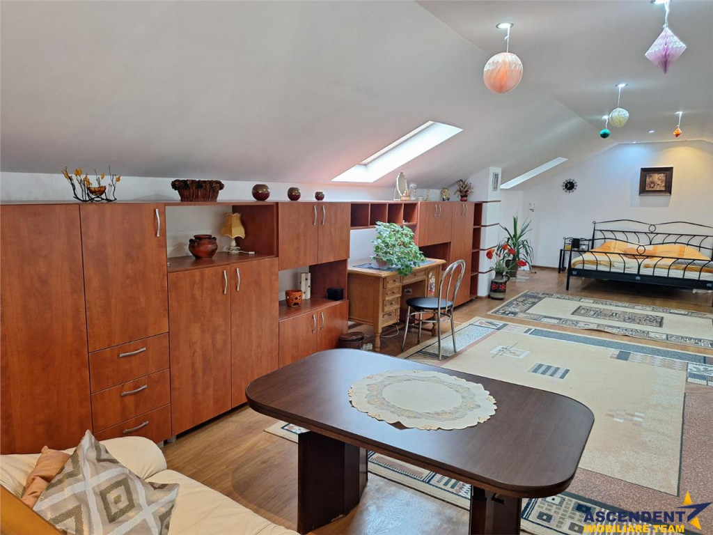 Comision chirias: 50% TVA, din valoarea de inchiriere, o singura data. ASCENDENT IMOBILIARE Va propunem spre inchiriere o casa cocheta situata in zona Bartolomeu, intr-un cadru linistit dar si acces rapid catre punctele de interes ale orasului. Proprietatea face parte dintr-o curte comuna cu un singur vecin, ceea ce creeaza un ambient familiar, dar pastrand totodata spatiul personal. Ofera un mix perfect intre functionalitate si atmosfera primitoare. La parter, spatiul este gandit pentru a sustine un stil de viata relaxat si eficient: un hol de intrare care separa discret zona de zi, o baie moderna, o bucatarie deschisa care comunica armonios cu livingul luminos si un dormitor confortabil pentru odihna. La etaj se afla o mansarda generoasa de aproximativ 50 mp, un spatiu cu personalitate care poate fi amenajat fie ca al doilea dormitor, fie ca o camera de recreere, birou, studio de lucru sau zona de relaxare. Inaltimea libera si suprafata ampla creeaza un cadru aerisit, versatil si inspirant. Locuinta se potriveste perfect unei familii, unui cuplu sau unei persoane care lucreaza de acasa si cauta un spatiu distinct, cu caracter. Disponibila imediat. Consilier dedicat acestei oferte: domnul Catalin Dumitriu 0737981623
