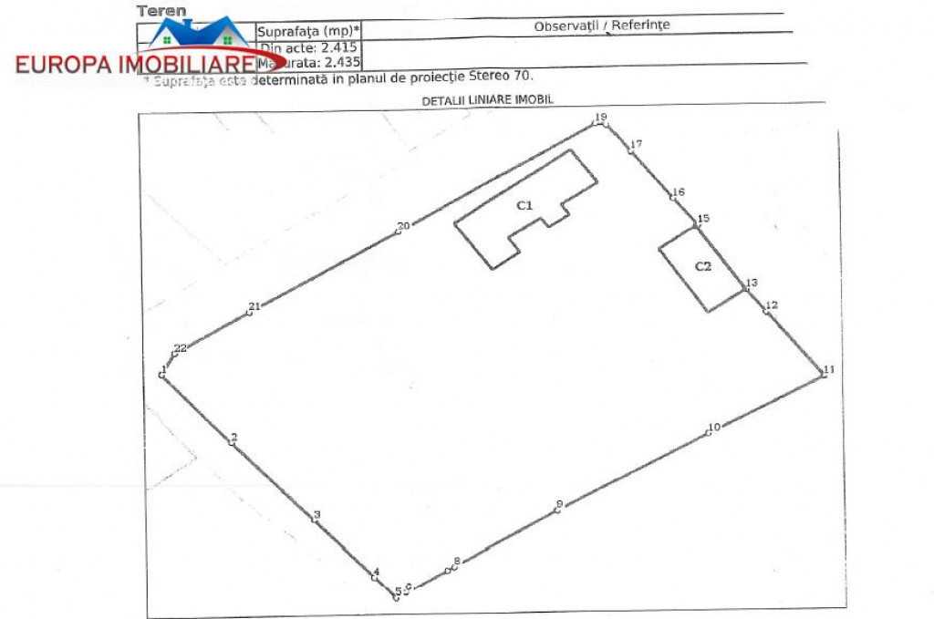 VIZIONARE IMEDIATA! CHEIA ESTE IN AGENTIE! Europa Imobiliare va ofera spre vanzare, in exclusivitate, casa situata in Loc. Mahmudia, Jud. Tulcea cu teren in suprafata de 2435 mp, avand 2 deschideri la 2 strazi. Casa este construita din chirpic, tencuita exterior si acoperita cu tabla. Compartimentare: 3 camere, baie si bucatarie insumand o suprafata construita de 101 mp. Incalzirea se realizeaza cu ajutorul sobelor de teracota. Pe teren este construita o magazie in suprafata de 53 mp. Imobilul dispune de utilitati precum: apa, curent electric, canalizare. Curtea este bine ingrijita avand diversi pomi fructiferi, vita de vie, loc pentru legume, fantana. Actele sunt pregatite pentru vanzare! Pretul propus de proprietar este 65.000 Euro. Pentru mai multe informatii si vizionari nu ezitati sa ne contactati sau va asteptam la sediul agentiei din str. Babadag nr. 12, bl.6, parter (vis-a-vis de CEC BANK). Agentia imobiliara Europa este o agentie de consultanta imobiliara profesionista, care lucreaza pentru tine si cu tine pentru a obtine cea mai buna tranzactie in favoarea ta! Nu conteaza daca esti proprietar sau esti un client in cautarea unei proprietati, noi suntem aici pentru a facilita totul, astfel incat lucrurile sa decurga perfect! ID intern: 3955.