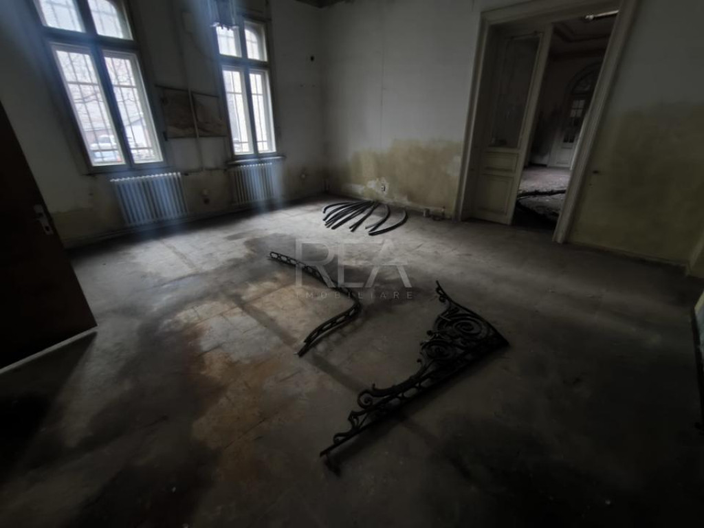 REA Imobiliare Casa cu 13 camere, zona Calea Dorobanti, tip vagon , finalizata in 1917. Suprafata totala este de 780 mp din care suprafata utila de 773 mp, suprafaata terasal 7 mp. Curtea este comuna. Necesita renovare completa, sistemele electrice si sanitare fiind vechi. Casa dispune de un pod inalt si 2 curti de lumina de 8,8 mp fiecare. Compartimentare: parter -> 8 camere, 2 bai, terasa; subsol -> 3 camere si camera tehnica; pod -> nu este compartimentat. Transport in comun -> 1 min pana la statiile STB si 5 min pana la statia de metrou Piata Romana. Pentru detalii si vizionari va rugam sa ne contactati specificand codul de identificare P9984. Id intern: P9984