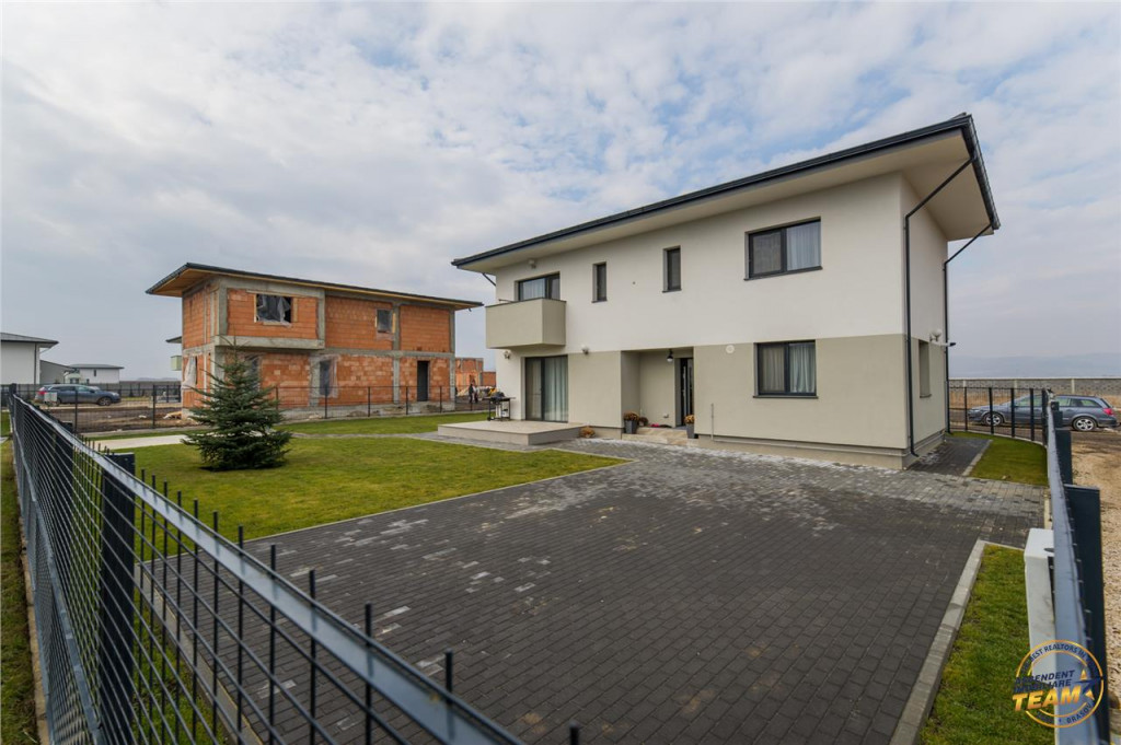 Comision cumparator: 0%. ASCENDENT IMOBILIARE propune spre vanzare, o oferta foarte buna din ansamblul Diferit Haus, materializata printr-o proprietate deosebita, dispusa pe P E, cu o suprafata de 114 mp utili si 500 mp teren, situata intr-un cartier exclusivist, sub configuratia a patru modele distincte, de o calitate superioara, a executiei si a materialelor folosite, ansamblu care a luat nastere prin prisma celor 20 de ani de experienta a dezvoltatorului, acumulata atat in tara cat si in strainatate. Designul intregului cartier a fost inspirat de privelistea catre peisajul montan care se diferentiaza prin unicitatea zonei, dar si de stilul de viata care se doreste a fi implementat si transmis catre viitorii proprietari. Imobilul dispune de incalzire in pardoseala, tamplarie cu 3 foi si 7 camere si de toate utilitatile: gaz, curent, apa, canalizare, internet cu fibra optica si iluminat public cu LED. Proprietatea este proiectata pe doua niveluri si include trei dormitoare, trei bai, un living cu expunere spre terasa, bucatarie cu zona de dinning si spatii inteligent compartimentate pentru a oferi posibilitati multiple de a amenaja casa asa cum va doriti. Bucataria are o suprafata ampla, luminoasa, cu locuri pentru depozitare si zona de luat masa. Spatiile largi, terasa si curtea generoasa, contureaza locul perfect pentru a va relaxa si a crea amintiri alaturi de cei dragi, evidentiind notiunea de ACASA. Pozitionare casei care face acum obiectul vanzarii, este spre S-E, beneficiind de o priveliste ampla spre culmile montane. Pretul include TVA. Imobilul se va preda la cheie in cateva luni. Consilier dedicat acestei oferte: domnul George Mosor 0732847048 Detalii,fotografii suplimentare si alte variante exclusive : www.ascendentimobiliare.ro