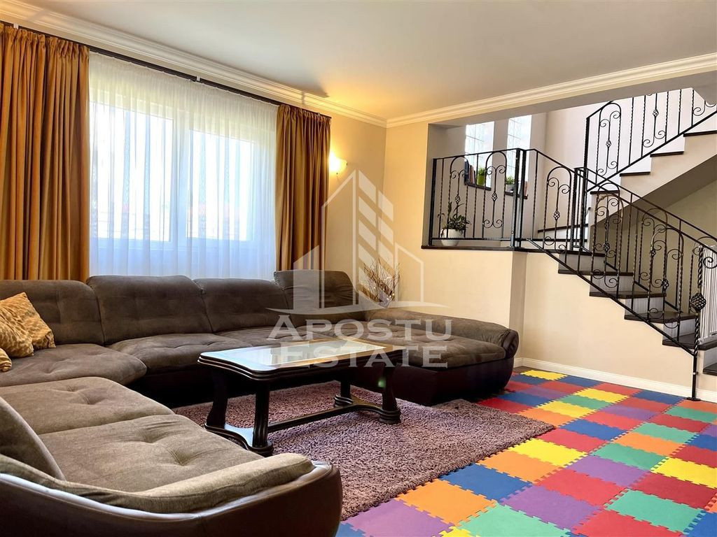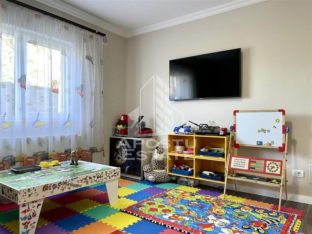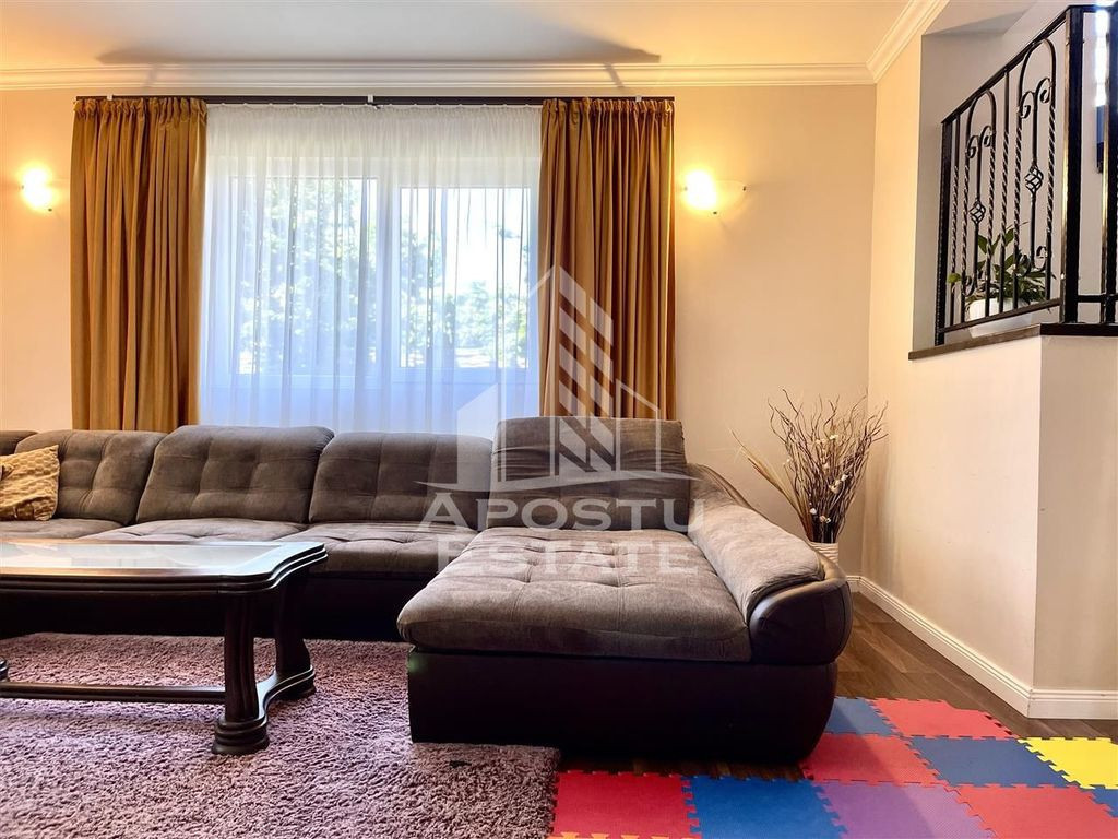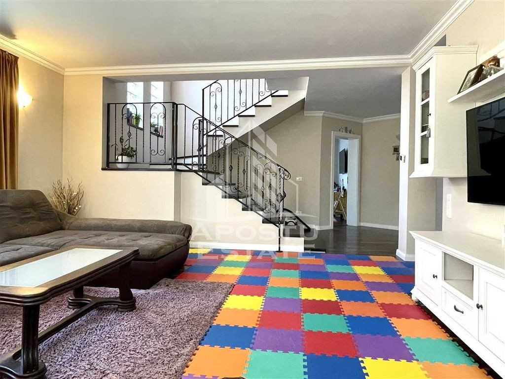 APOSTU ESTATE va propune spre vanzare o proprietate superba cum rar apar pe piata situata in apropiere de strada principala din Dumbravita cu acces la Centura, orasului Timisoara, Autostrada A1 si Aeroport. Curtea este mare, cu vegetatie matura, ingrijita, pomi fructiferi si suficient loc pentru orice tip de activitate. In partea din spate se gaseste o terasa acoperita ideala ca spatiu de depozitare si o magazie. In partea din spate se gaseste terasa principala acoperita. Casa este luminoasa extrem de spatioasa aerisita si se distinge prin calitatea materialelor de constructie alese. Compartimentarea este moderna potrivita pentru munca de acasa sau unei familii cu mai multe generatii. Parter: -Hol acces; -baie cu geam; -bucatarie cu geam mare si iesire in curte si acces direct in camara; -dormitor spatios ideal ca loc de joaca sau birou pentru munca de acasa; -living mare. Etaj: -un dormitor superb cu acces la dressing cu bransamentele necesare pentru a fi transformat in baie; -dormitor secundar; -dormitor principal; -baie mare cu cada. Casa este retrasa de la strada pentru mai multa liniste si intimitate. Pretul include mobilierul si toata aparatura electrocasnica: aer conditionat frigider aragaz hota. Sunt prea multe de spus despre aceasta proprietate superba asa ca va invitam la o vizionare chiar astazi! ID intern: 9154.
