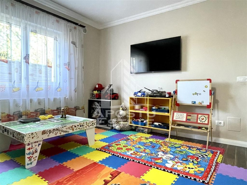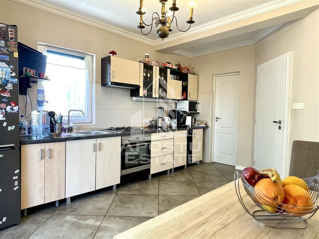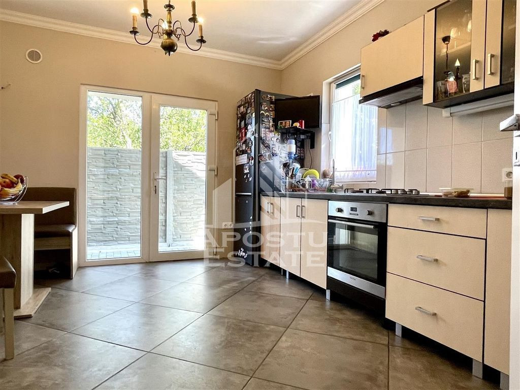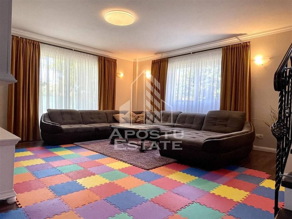 APOSTU ESTATE va propune spre vanzare o proprietate superba cum rar apar pe piata situata in apropiere de strada principala din Dumbravita cu acces la Centura, orasului Timisoara, Autostrada A1 si Aeroport. Curtea este mare, cu vegetatie matura, ingrijita, pomi fructiferi si suficient loc pentru orice tip de activitate. In partea din spate se gaseste o terasa acoperita ideala ca spatiu de depozitare si o magazie. In partea din spate se gaseste terasa principala acoperita. Casa este luminoasa extrem de spatioasa aerisita si se distinge prin calitatea materialelor de constructie alese. Compartimentarea este moderna potrivita pentru munca de acasa sau unei familii cu mai multe generatii. Parter: -Hol acces; -baie cu geam; -bucatarie cu geam mare si iesire in curte si acces direct in camara; -dormitor spatios ideal ca loc de joaca sau birou pentru munca de acasa; -living mare. Etaj: -un dormitor superb cu acces la dressing cu bransamentele necesare pentru a fi transformat in baie; -dormitor secundar; -dormitor principal; -baie mare cu cada. Casa este retrasa de la strada pentru mai multa liniste si intimitate. Pretul include mobilierul si toata aparatura electrocasnica: aer conditionat frigider aragaz hota. Sunt prea multe de spus despre aceasta proprietate superba asa ca va invitam la o vizionare chiar astazi! ID intern: 9154.