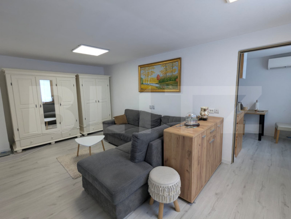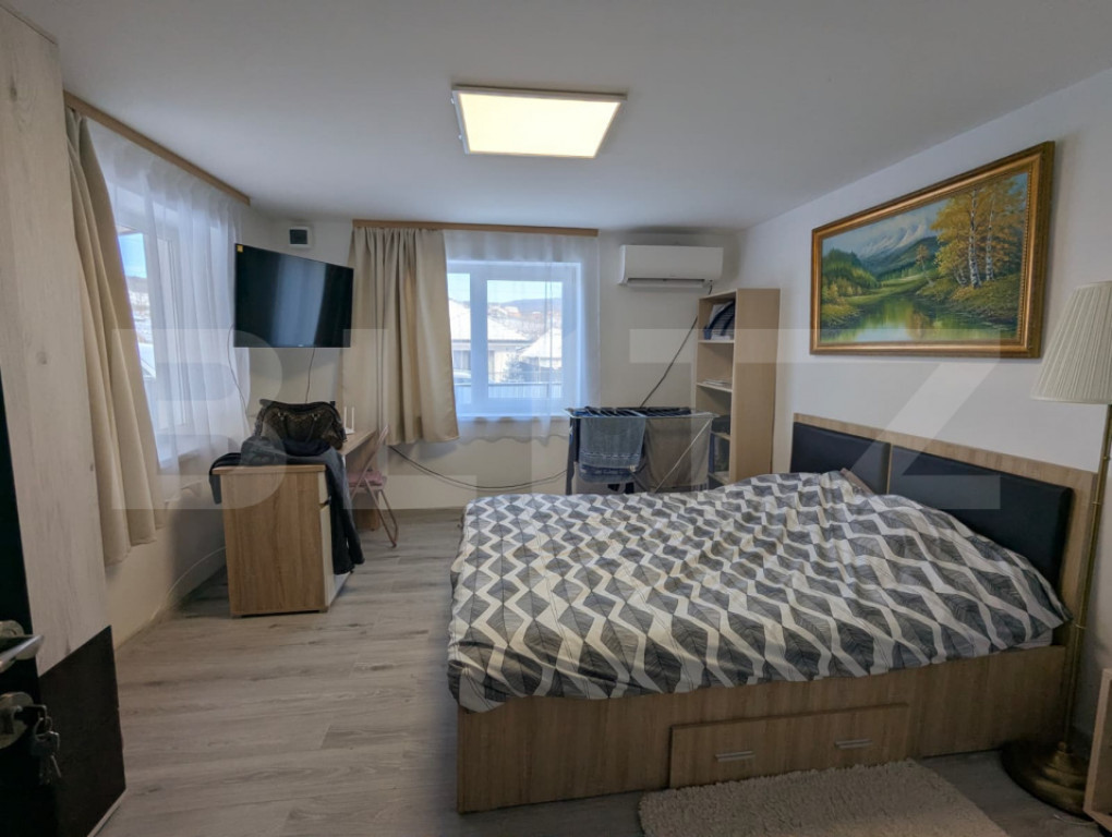 Blitz propune spre vânzare o casă cochetă cu 2 camere, situată în satul Vâlcele, la doar 20 de minute de Cluj-Napoca, într-o zonă liniștită, ideală pentru cei care își doresc aer curat și relaxare, dar cu acces rapid către oraș. Proprietatea are o suprafață utilă de 63 mp și este amplasată pe un teren generos de 1.000 mp, oferind multiple posibilități de amenajare – grădină, foișor, zonă de relaxare sau extindere. Compartimentare (semidecomandată): Living Dormitor (cu acces din living) Bucătărie Baie Casa se vinde finisată și mobilată, exact așa cum se prezintă în imagini, fiind pregătită pentru mutare imediată. O alegere potrivită pentru locuință permanentă, casă de vacanță sau investiție, într-o zonă retrasă, dar bine conectată la Cluj-Napoca. Pentru mai multe detalii sau pentru programarea unei vizionări, vă invităm să ne contactați. Cod ofertă / ID BLITZ: P164717 Id intern: P164717