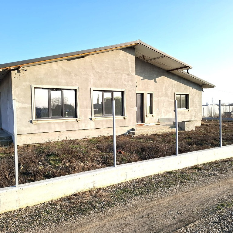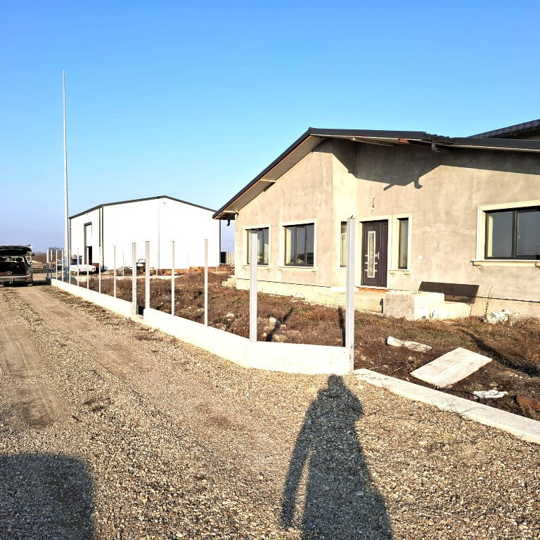 Construcția este realizată pe structură metalică, cu panouri tip sandwich și izolație superioară de 40 cm vată bazaltică, oferind un nivel ridicat de eficiență energetică și confort termic pe tot parcursul anului , dispune de 2 dormitoare , living generos, bucatarie , si baie (complet utilata).