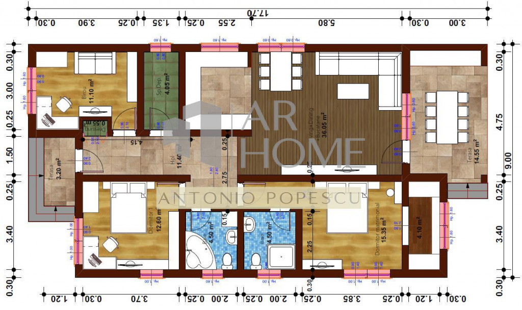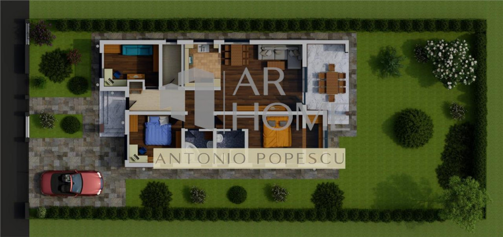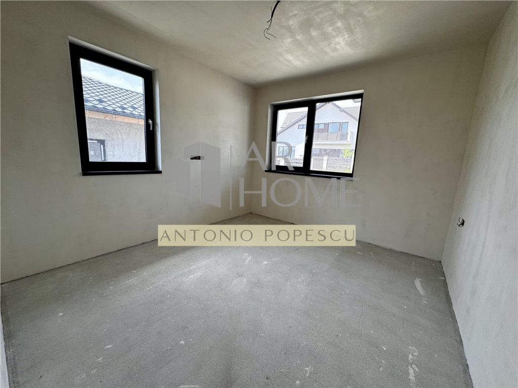 Vanzare casa 4 camere, parter in Paulesti. Imobilul se afla intr-o zona de vile nou construite, pe o strada fara trafic auto intens, avand ca vecinatati scoala, gradinita, afterschool, parc, supermarket. Este construit in anul 2024 cu fundatia de beton armat izolata termic cu polistiren extrudat si hidroizolata, structura pe cadre de beton, peretii din caramida Porotherm, plca de beton, acoperis din tabla Bilka izolat cu vata minerala, tencuit la interior si izolat termic la exterior cu polistiren de 10 cm EPS 100. Amprenta casei este de 147 mp, suprafata utila 105 mp, plus 2 terase in suprafata de 18 mp, compartimentata astfel: terasa intrare, hol, camera tehnica, living, bucatarie, dormitor matrimonial cu baie si dressing propriu, 2 dormitoare, baie si terasa spate. Terenul are o suprafata de 450 mp, deschiderea de 14 ml, imprejmuit cu. gard de beton si plasa bordurata. Dotari: curte pavata, pamant vegetal si gazon, terase placate cu ceramica de exterior, usa intrare din lemn stratificat, usi interioare celulare Porta Doors, incalzire in pardoseala cu termostat pe fiecare camera, centrala termica proprie, ceramica (Delta Studio), parchet laminat, vopsea lavabila, tamplarie PVC Salamander 7 camere cu geam tripan etc. Pret: 214000 euro, TVA inclus.