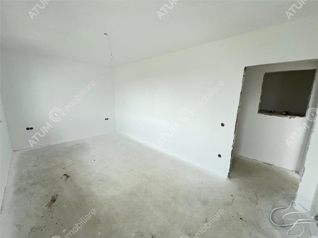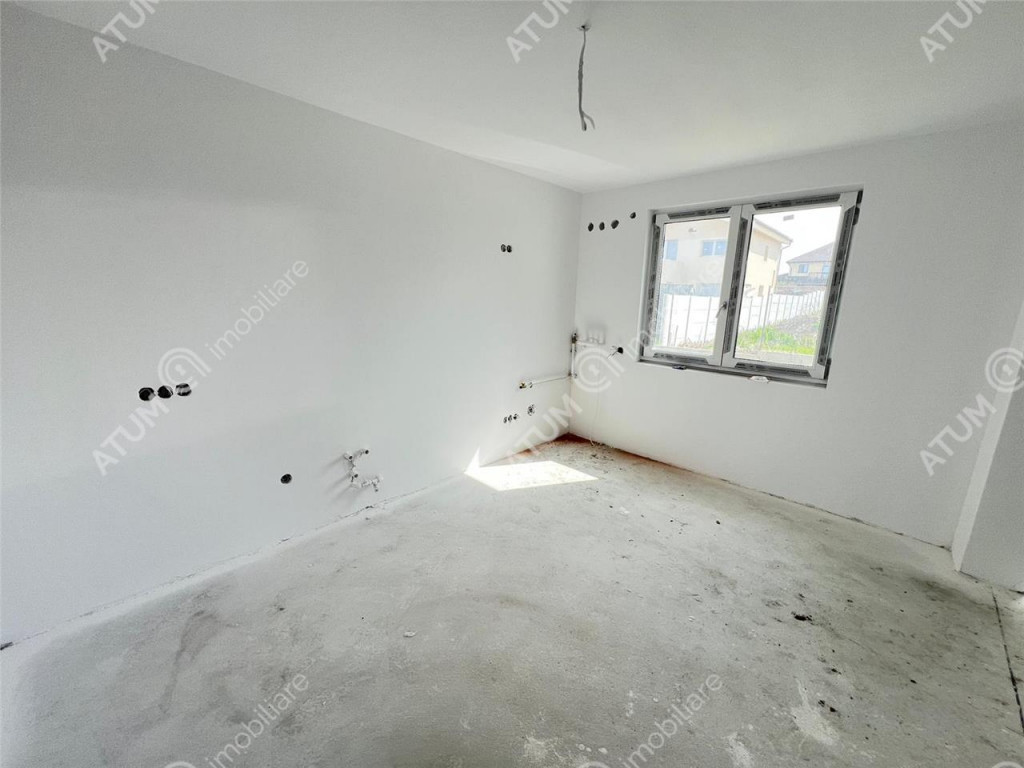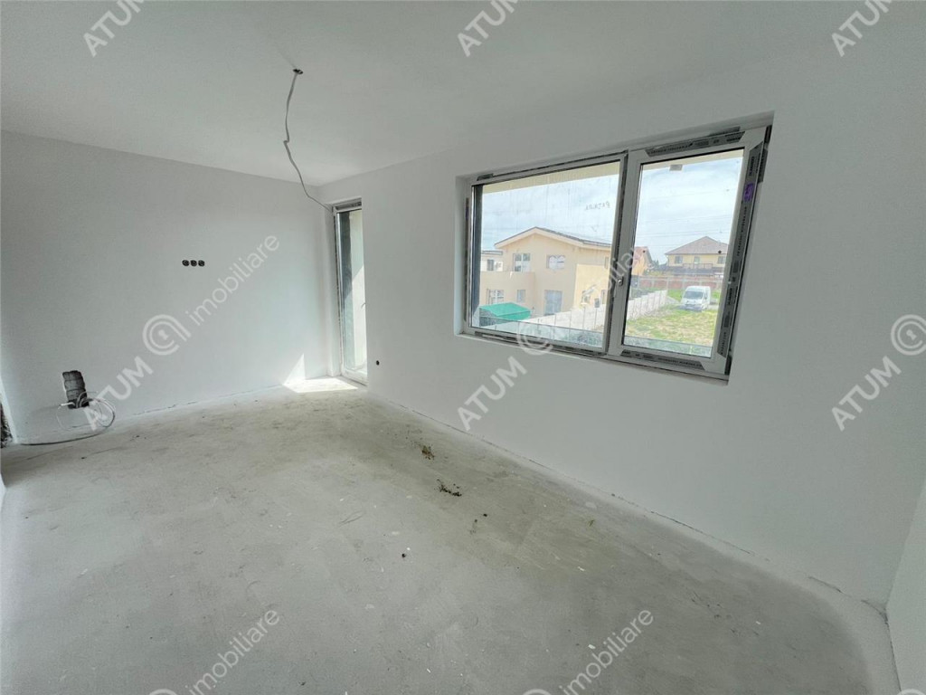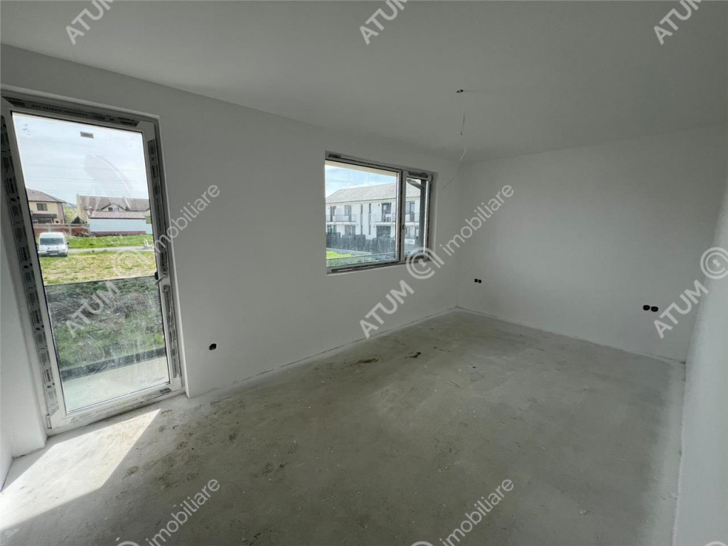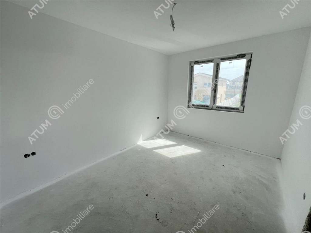 De vanzare, casa compusa din 3 camere, 2 bai si balcon, cu regimul de inaltime Parter Etaj, si curte libera de 170 mp, in Sibiu zona Calea Cisnadiei. Locuinta are 83 mp utili si este compusa pe parter din camera de zi 20.51 mp, bucatarie inchisa 13.53 mp, wc servici de 1.75 mp si geam de aerisire, hol de acces de 2.03 mp cu spatiu exclusiv pentru cuier si pantofar, sas de 1.38 mp. Etajul este compus din 2 dormitoare cu suprafete de 16.50 mp, respectiv 12.92 mp, hol de 4.55 mp si o baie 4.03 mp. Separat de suprafata utila acesta dispune de un balcon in suprafata de 5.07 mp. Finisaje standard structura si acoperis: Elevatie 50 cm izolata placata cu polistiren extrudat si acoperita cu tencuiala decorativa; Zidarie din caramida Porotherm cu grosimea de 30 cm exterior si 25 cm interior; Peretii exteriori izolati cu polistiren de 10 cm cu densitatea EPS80 si acoperiti cu tencuiala decorativa de culoare alb si gri antracit; Tamplarie PVC 5 camere marca Salamander cu 3 foi de sticla si feronerie marca Maco, glafuri exterioare, culoare tamplarie alb la interior si antracit la exterior; Usa de acces marca Salamander cu izolatie termica si fonica; Acoperis cu invelitoare tip tabla ce include tot sistemul ( folie anticondens, asteriala, capriori, vata de 25 cm, bariera vapori si 2 placi de rigips antifoc ) si burlane din metal; Curtea se preda partial pavata, respectiv in zona destinata parcarii a doua autoturisme. Finisaje standard la interior: Pereti tencuiti ( tencuiala var-ciment ), gletuiti si zugraviti cu lavabila alba; Instalatii electrice cu tablou general individual si sigurante pentru consumatorii de putere, doze, instalatii pentru curenti slabi ( TV, Telefon, Internet ) ; Instalatie termica cu centrala termica in condensatie si senzor de gaz, incalzire in pardoseala parter si etaj cu distribuitor separat pentru fiecare etaj si termostatare indivituala pe fiecare incapere; Racorduri apa-canal in baie si bucatarie; Racord gaz metan in bucatarie; Contorizari individuale si contoare montate pentru Gaz, Curent si Apa; Rezervor wc incastrat in perete; Imobilul se preda la stadiul de alb finisat sau la stadiul de cheie la costul suplimentar de 10.000 euro. Valoarea locuintei la stadiul de alb finisat este de 172.000 euro. Aceasta se poate achizitiona si prin credit bancar. ID intern: 2670.