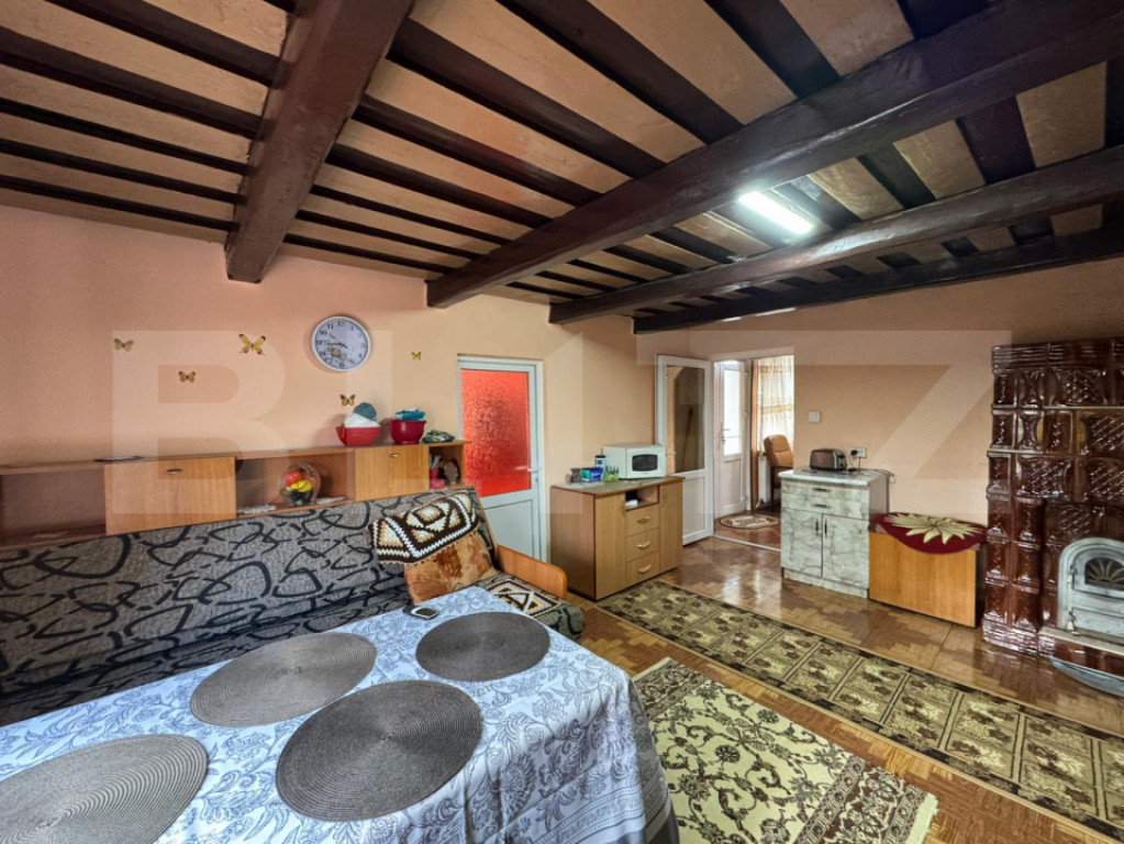 Blitz va propune o casă cochetă situată în localitatea Ghelari, într-o zonă deosebit de liniștită, cu aer curat și o priveliste panoramică superbă asupra naturii — locul ideal pentru relaxare sau locuit permanent. Caracteristici principale: Suprafață construită: 70 mp Teren generos: 9.000 mp Construcție din lemn, renovată complet în 2018 Izolație exterioară completă Acoperiș nou (înlocuit integral în 2018) Instalație electrică și sanitară refăcute Compartimentare: Demisol: Cameră tehnică Magazie pentru lemne Beci Bucătărie de vară Terasă spațioasă Parter: 2 dormitoare Living luminos Hol Baie Terasă cu vedere panoramică Sistem de încălzire: Centrală pe lemne Sobe de teracotă, pentru un plus de confort și căldură autentică Puncte forte: Cadru natural superb Liniște deplină, perfect pentru relaxare sau refugiu de vacanță Teren ideal pentru grădinărit, livadă sau alte activități gospodărești Pentru mai multe detalii și programări la vizionare, nu ezitați să mă contactați! Cod ofertă / ID BLITZ: P153004 Id intern: P153004