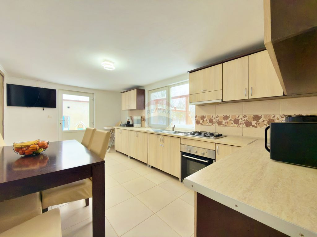 RE/MAX Dynamic vă propune spre vânzare, în exclusivitate, o casă în orașul Pecica, județul Arad. Proprietatea are următoarele caracteristici: - suprafață de 128 mp construiți (conform CF), 97,2 mp utili (conform releveu) și 788 mp teren (conform CF); - utilități complete – curent electric, gaz, apă și canalizare; - clasă energetică B; - compartimentare: 3 camere (living și două dormitoare – releveu atașat în poze), bucătărie, hol, baie și debara; - încălzire prin centrală termică proprie cu calorifere; - material de construcție: mixt (cărămidă și văiugă). Se acceptă credit ipotecar. Casa se vinde mobilată și utilată, conform fotografiilor (exceptând obiectele personale). Dotări și specificații: tâmplărie PVC, izolație termică exterioară de 10 cm, interior renovat complet în 2025, frigider cu congelator, aragaz, cuptor electric, hotă, TV-uri, aparat de aer condiționat, mașină de spălat și uscător de rufe, iluminat LED etc. Vă invit la vizionare!
