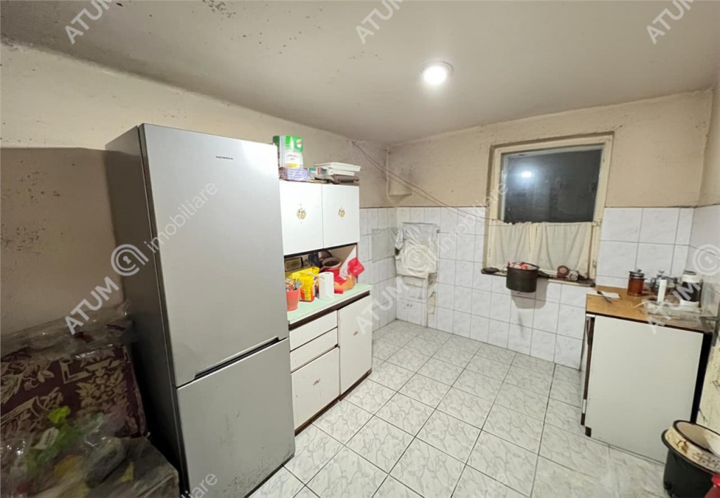 Va propunem spre vanzare o casa individuala, situata in zona Trei Stejari din Sibiu. Proprietatea este dispusa pe parter si etaj si beneficiaza de o compartimentare practica, avand la parter o bucatarie, camera, hol si camara, iar la etaj doua dormitoare, hol, o a doua bucatarie, baie cu geam si camara cu geam. In total, casa dispune de 96 mp utili. Separat mai detine 3 pivnite si pod, oferind spatii generoase de depozitare si multiple posibilitati de reorganizare. Terenul aferent are o suprafata de 310 mp, din care 195 mp reprezinta curte libera, oferind suficient spatiu pentru amenajarea unei gradini sau a unei zone de relaxare. Deschiderea stradala de 14 metri asigura acces facil, iar proprietatea dispune si de un garaj de aproximativ 15 mp. Casa este dotata cu tamplarie PVC cu geam termopan, usa de acces metalica, pardoseli din parchet din lemn masiv si dusumea, precum si gresie si faianta. Incalzirea se realizeaza prin sobe de teracota si convectoare, iar apa calda este asigurata de un sistem tip Junkers. Proprietatea necesita renovare, insa acest aspect ofera viitorilor proprietari oportunitatea de a o personaliza complet in functie de propriile preferinte, fiind o alegere potrivita atat pentru locuinta personala, cat si pentru investitie. Valoarea de achizitie a imobilului este de 250.000 euro negociabil. ID intern: 3393.