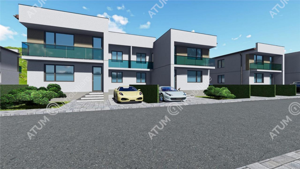 Comision 0! De vanzare in Sibiu zona Calea Cisnadiei, casa compusa din 4 camere, 2 bai si 2 balcoane, cu regimul de inaltime Parter Etaj, si curte libera de 50 mp. Locuinta are 111 mp utili si este compusa pe parter din camera de zi 29.34 mp, bucatarie inchisa 11.07 mp, baie 4.03 mp cu cabina de dus si geam de aerisire, hol de acces de 3 mp cu spatiu exclusiv pentru cuier si pantofar, sas de 4.55 mp. Etajul este compus din 3 dormitoare cu suprafete de 16.50 mp, 12.04 mp si respectiv 11.07 mp, hol de 8.33 mp si o baie 4.03 mp. Separat de suprafata utila acesta dispune de 2 balcoanede 3.63 mp si 5.07 mp. Finisaje standard structura si acoperis: Elevatie 50 cm izolata placata cu polistiren extrudat si acoperita cu tencuiala decorativa; Zidarie din caramida Porotherm cu grosimea de 30 cm exterior si 25 cm interior; Peretii exteriori izolati cu polistiren de 10 cm cu densitatea EPS80 si acoperiti cu tencuiala decorativa de culoare alb si gri antracit; Tamplarie PVC 5 camere marca Salamander cu 3 foi de sticla si feronerie marca Maco, glafuri exterioare, culoare tamplarie alb la interior si antracit la exterior; Usa de acces marca Salamander cu izolatie termica si fonica; Acoperis cu invelitoare tip tabla ce include tot sistemul ( folie anticondens, asteriala, capriori, vata de 25 cm, bariera vapori si 2 placi de rigips antifoc ) si burlane din metal; Curtea se preda partial pavata, respectiv in zona destinata parcarii a doua autoturisme. Finisaje standard la interior: Pereti tencuiti ( tencuiala var-ciment ), gletuiti si zugraviti cu lavabila alba; Instalatii electrice cu tablou general individual si sigurante pentru consumatorii de putere, doze, instalatii pentru curenti slabi ( TV, Telefon, Internet ) ; Instalatie termica cu centrala termica in condensatie si senzor de gaz, incalzire in pardoseala parter si etaj cu distribuitor separat pentru fiecare etaj si termostatare indivituala pe fiecare incapere; Racorduri apa-canal in baie si bucatarie; Racord gaz metan in bucatarie; Contorizari individuale si contoare montate pentru Gaz, Curent si Apa; Rezervor wc incastrat in perete. Imobilul se preda la stadiul de alb finisat sau la stadiul de cheie la costul suplimentar de 10.000 euro. Valoarea locuintei la stadiul de alb finisat este de 182.000 euro. Aceasta se poate achizitiona si prin credit bancar. ID intern: 2670.