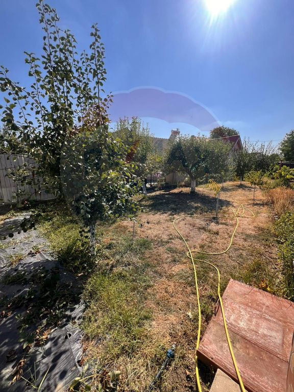 Curtea este amenajata cu pomi fructiferi si vita de vie, flori si solarii.